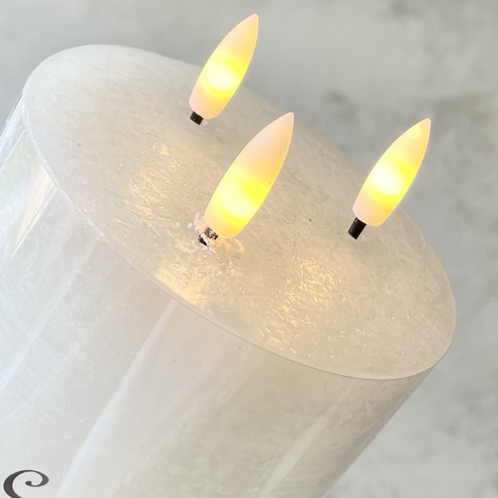 LED-Dreidochtkerze mit Timerfunktion, batteriebetrieben 2xAA (nicht enthalten), passend für den Dacia D28cm ohne Windlichtglas.