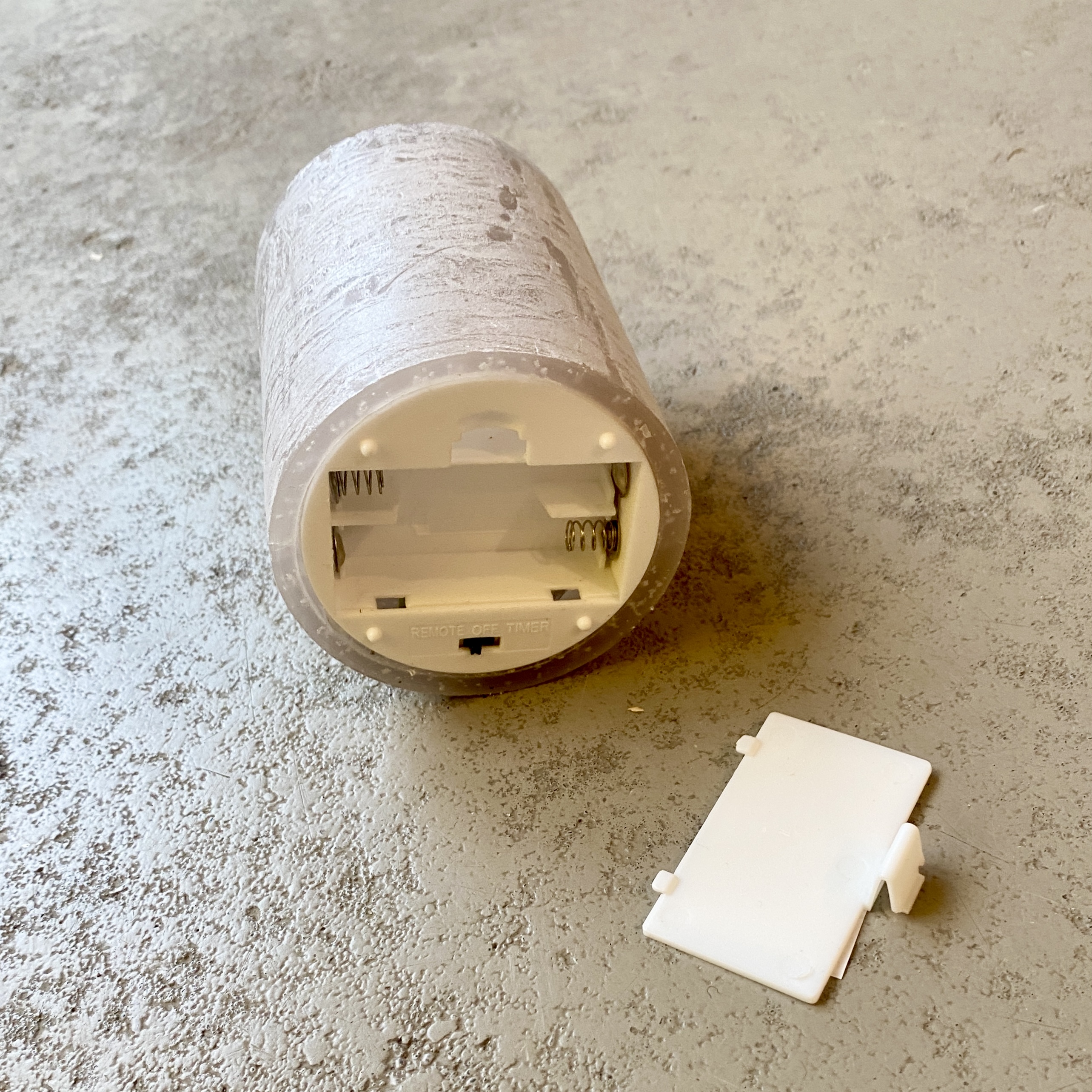 LED-Echtwachskerze in Dunkelgrau, 10cm hoch mit Timerfunktion, 2 AA Batterien nötig (nicht im Lieferumfang enthalten).