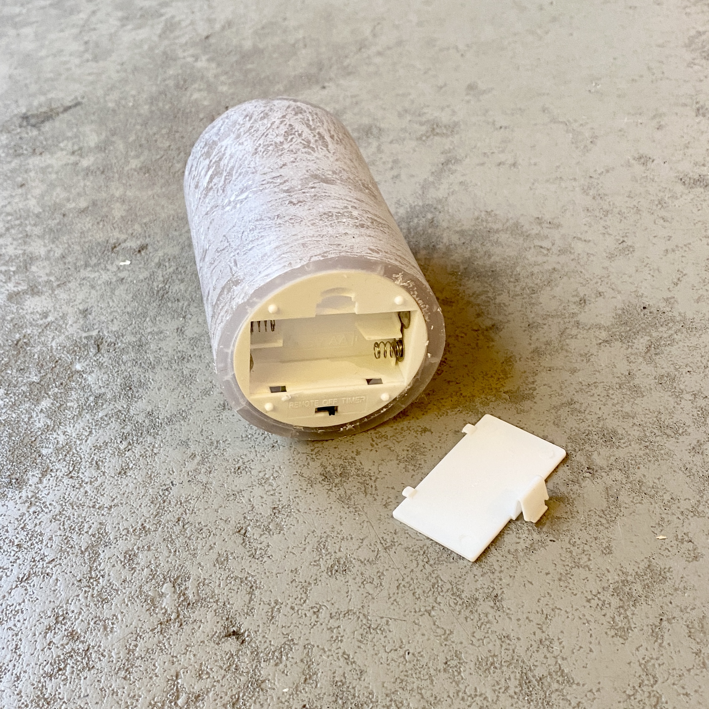 LED-Echtwachskerze in Dunkelgrau, 12cm hoch mit Timerfunktion, 2 AA Batterien nötig (nicht im Lieferumfang enthalten).