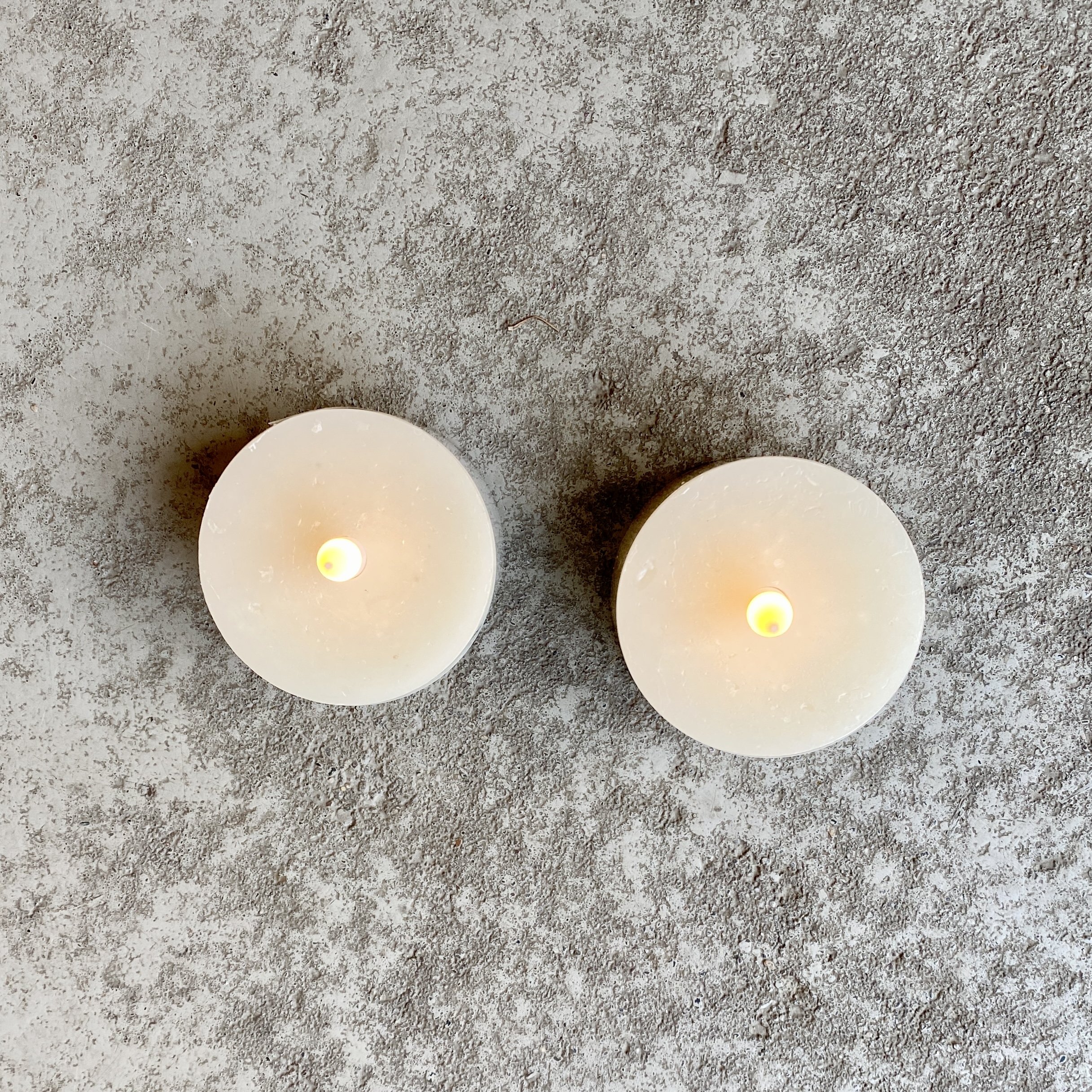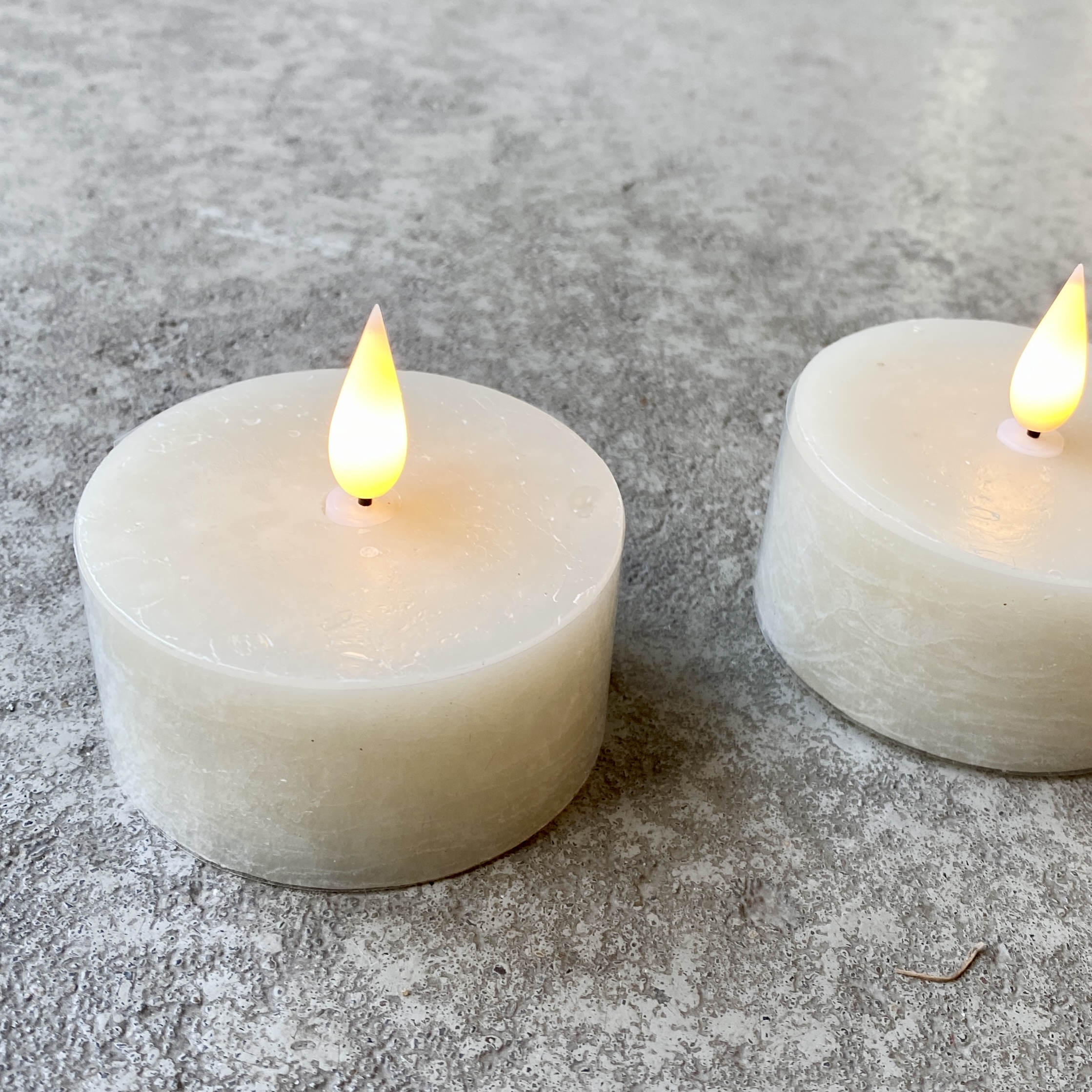 LED-Kerzen Set 4cm hoch in Greige mit Timerfunktion. Eine Fernbedienung liegt dabei.