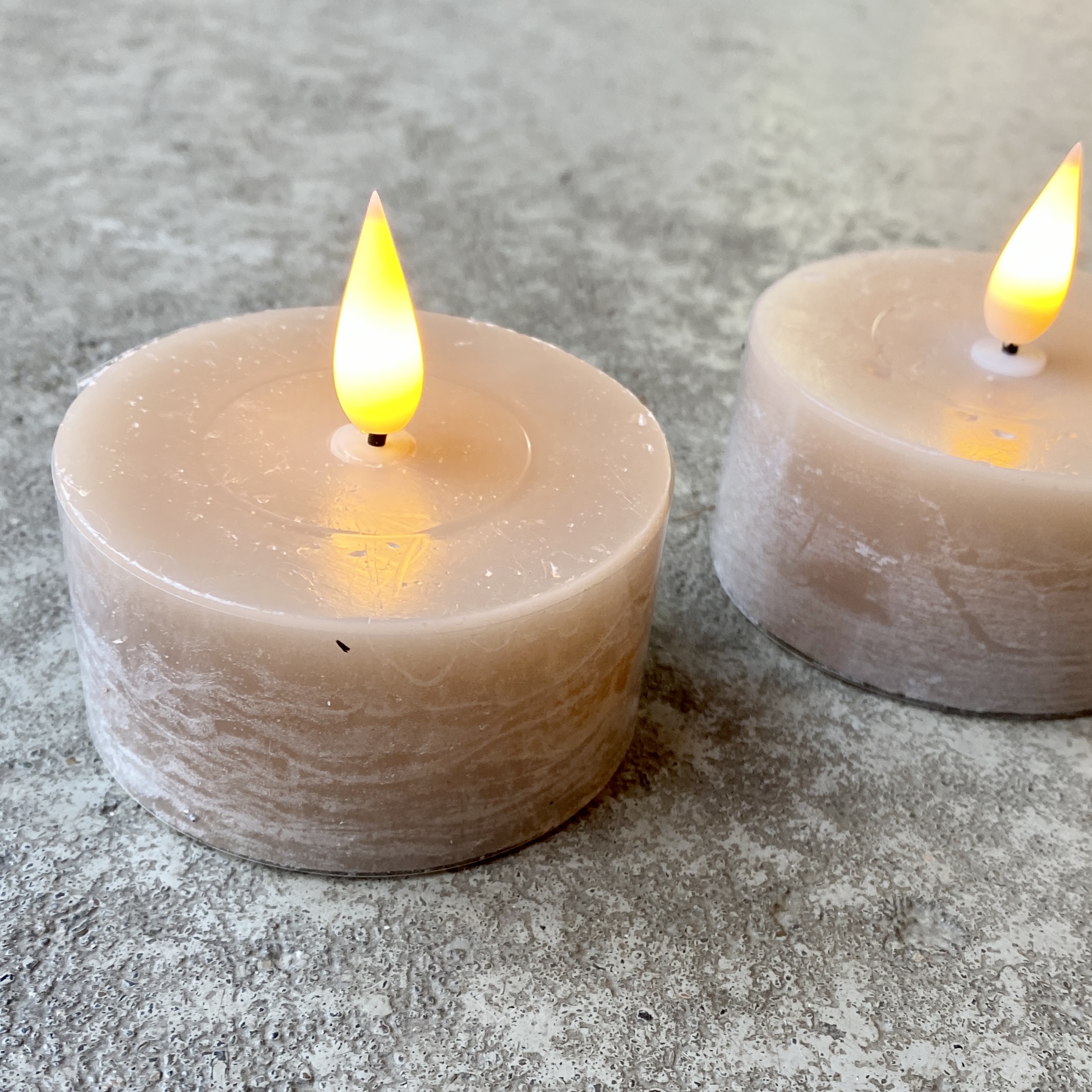 LED-Kerzen Set 4cm hoch in Taupe mit Timerfunktion. Eine Fernbedienung liegt dabei.
