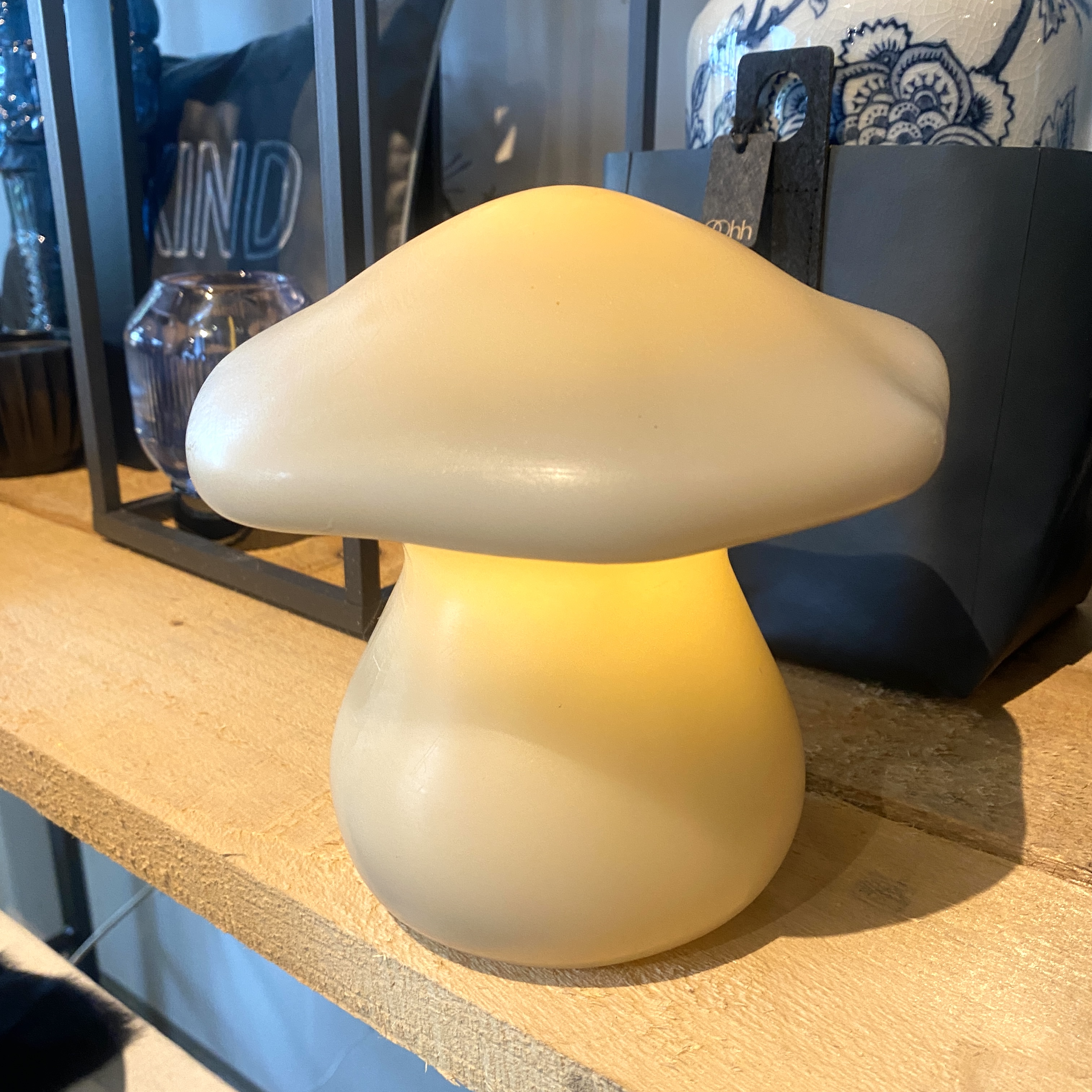 LED Kerze Mushroom groß in Greige aus Wachs.