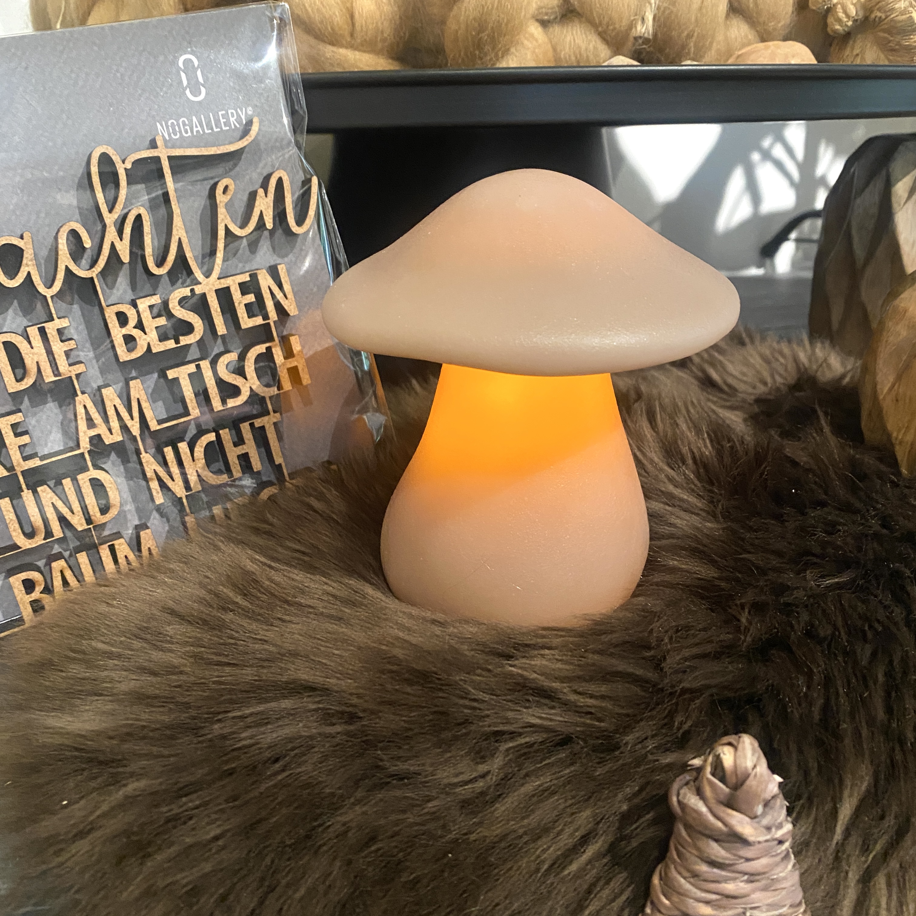 LED Kerze Mushroom "S" taupe