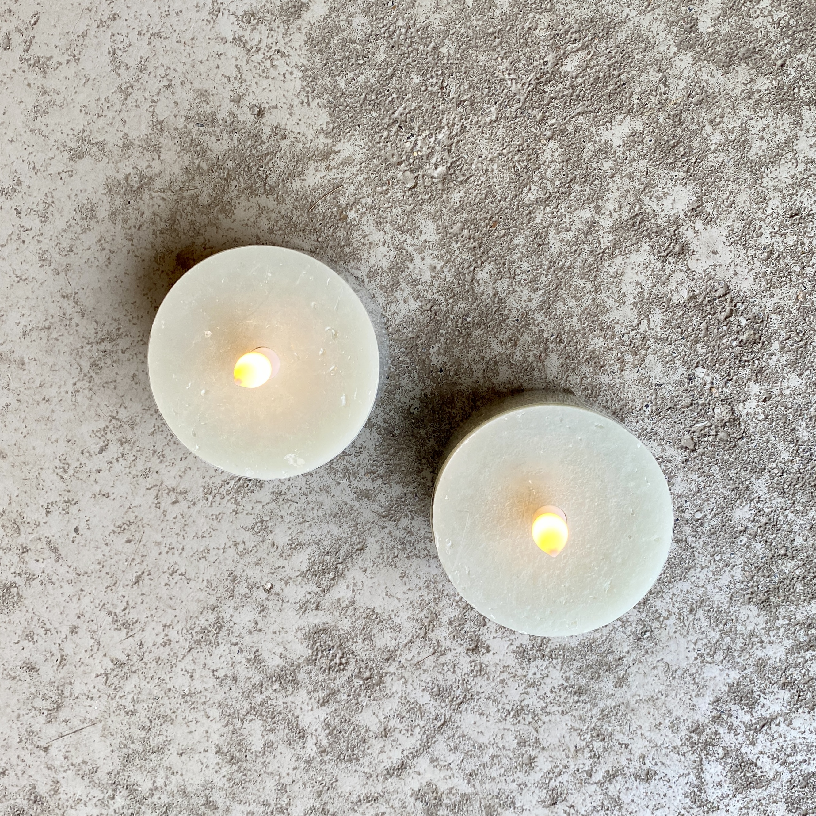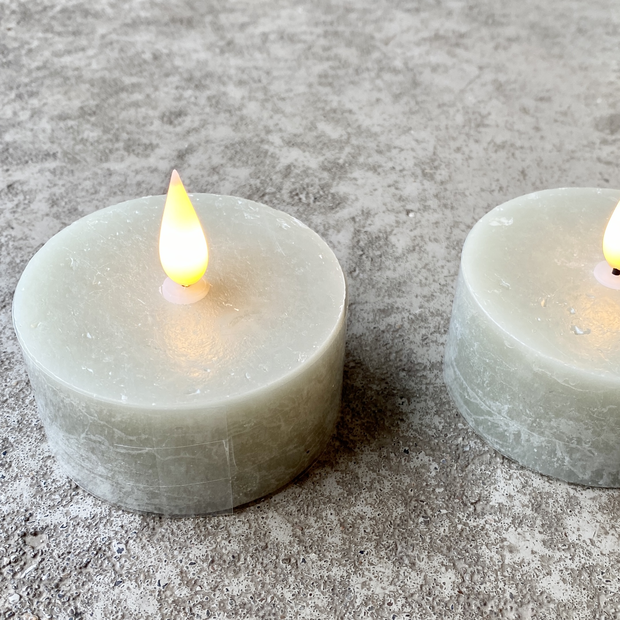 LED-Kerzen Set 4cm hoch in Celadon mit Timerfunktion. Eine Fernbedienung liegt dabei.