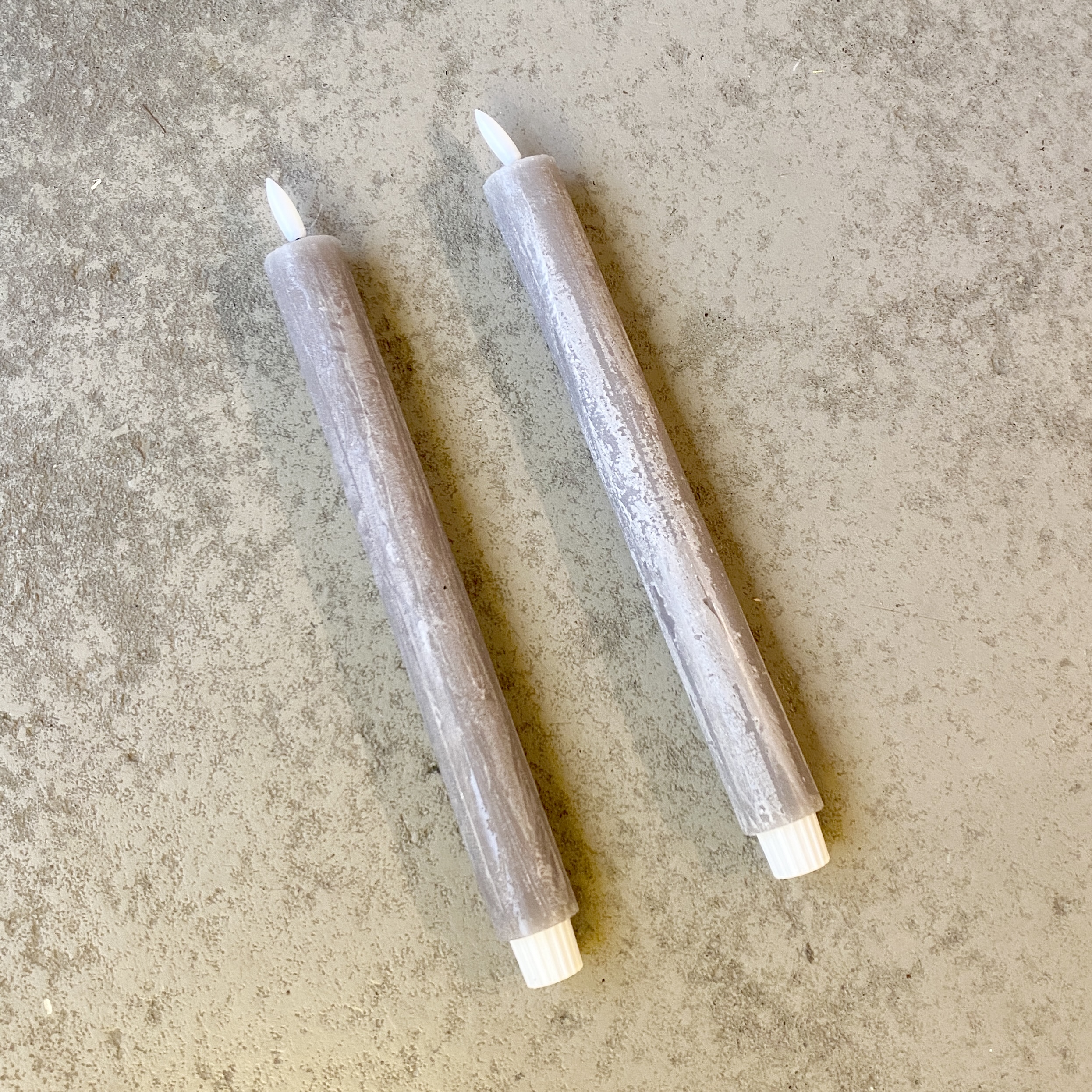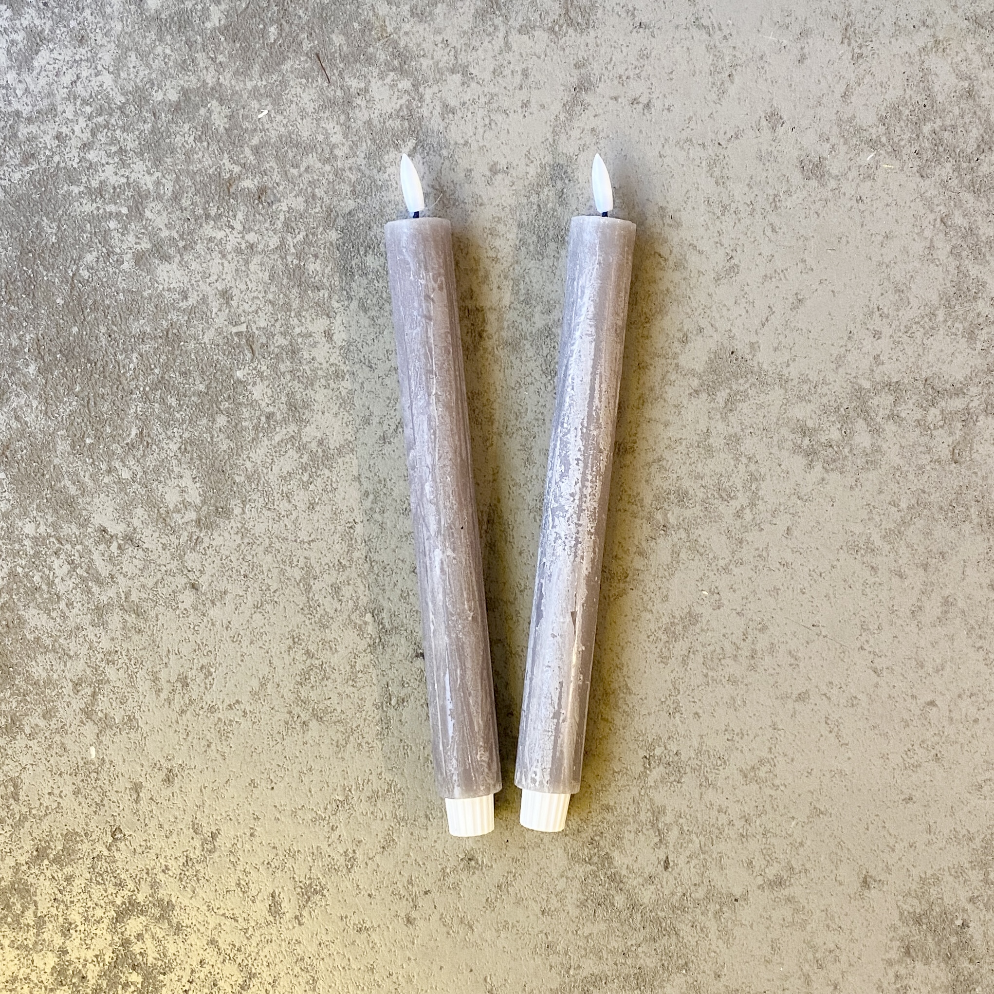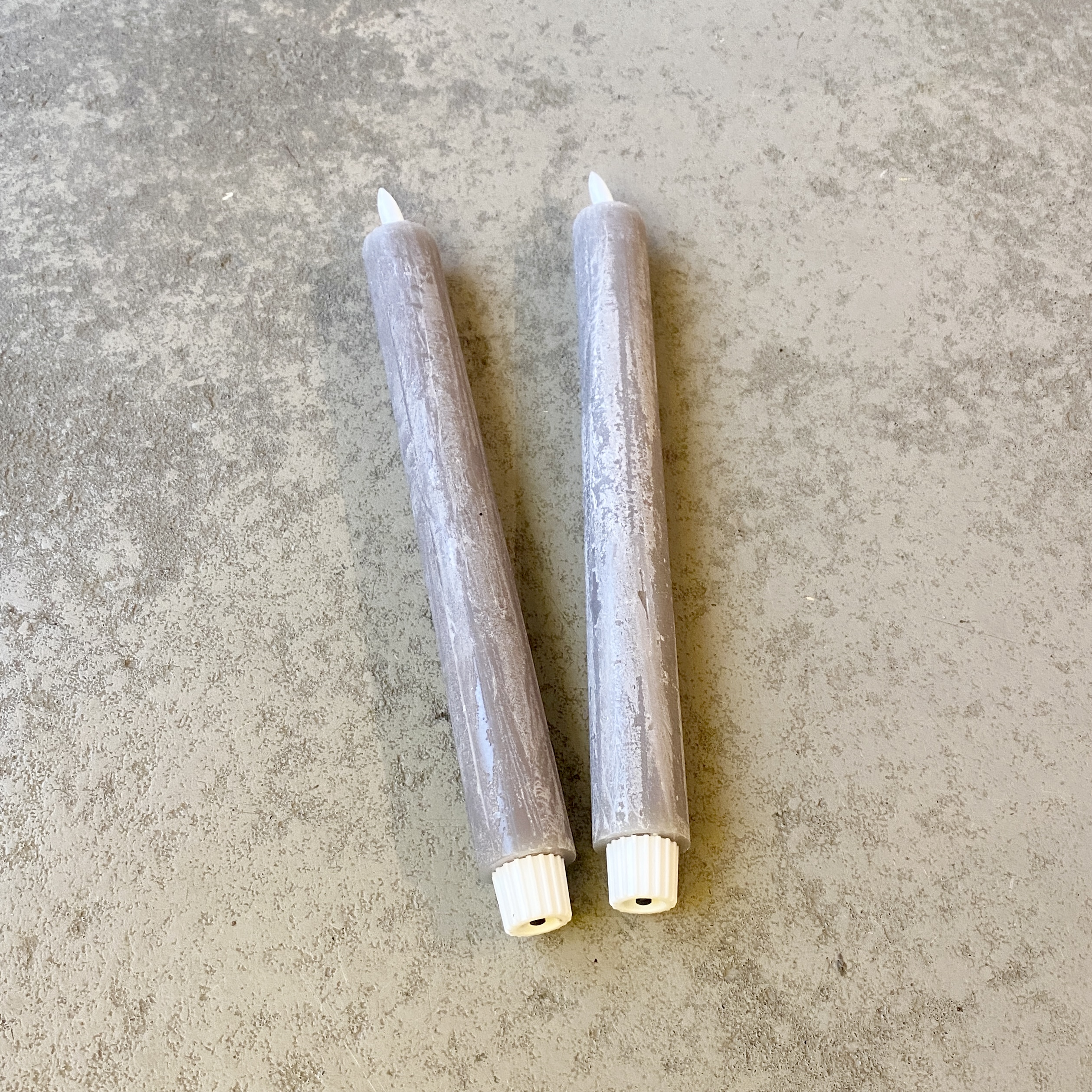 2er Set Stabkerzen in der Farbe Dunkelgrau 29cm hoch mit Timerfunktion. Jede Kerze muss mit einer 1,5V Batterie AAA bestückt werden.