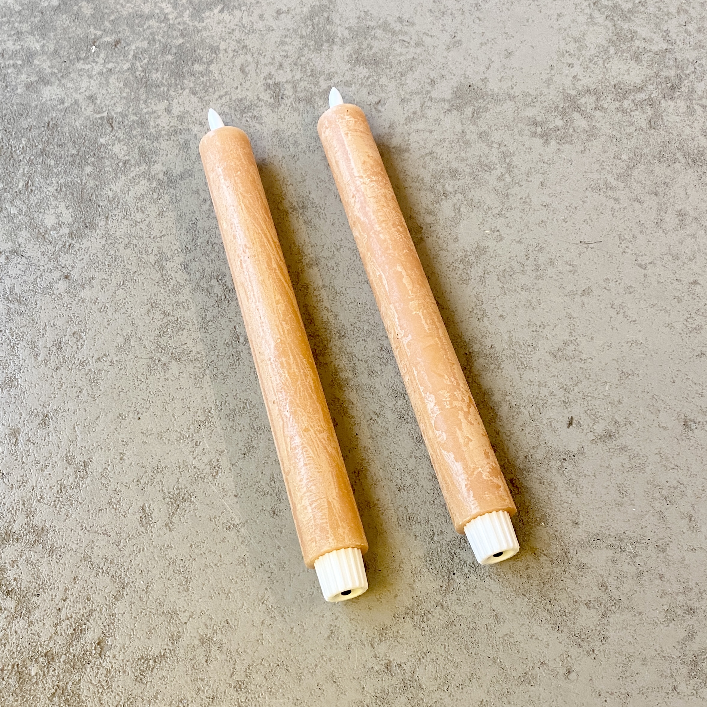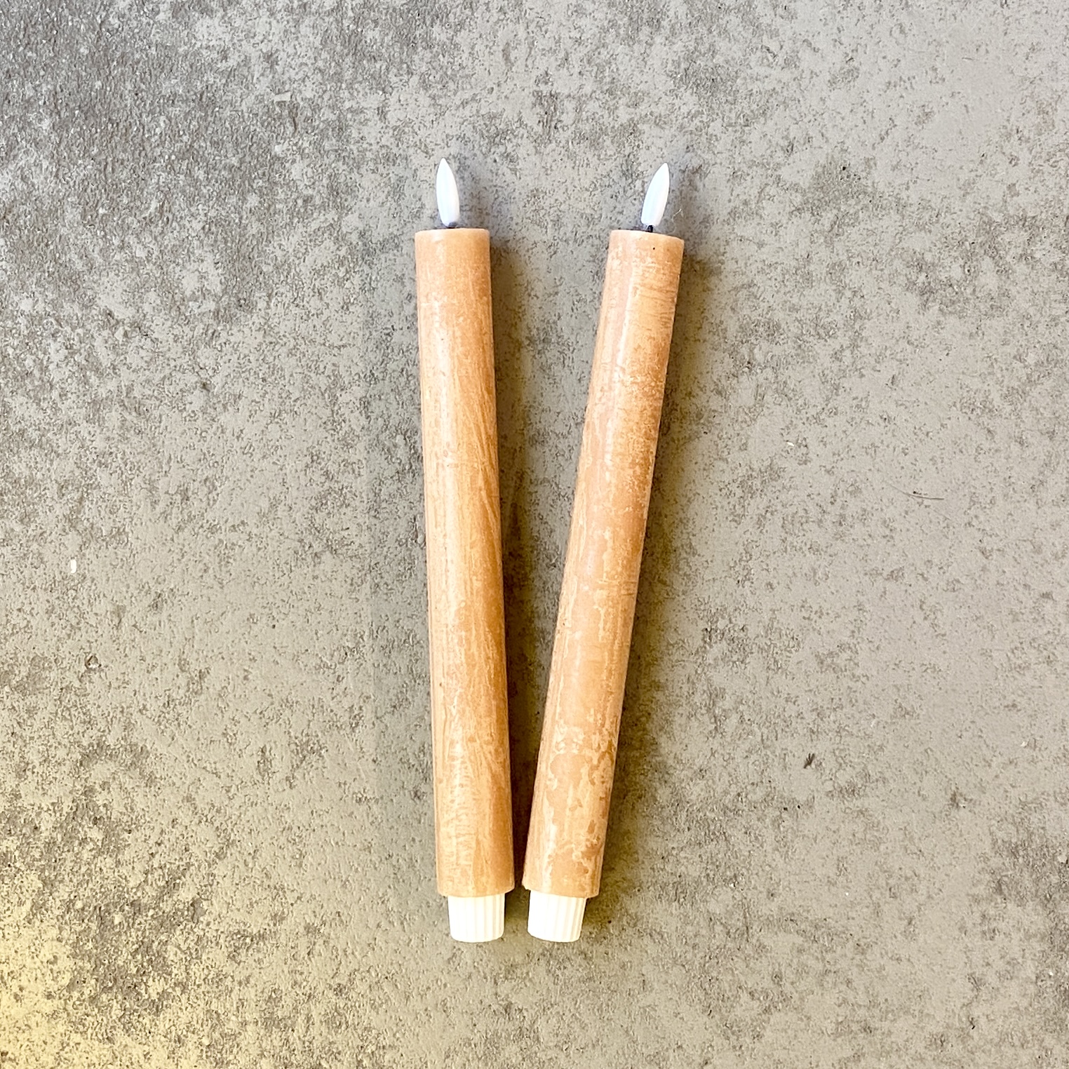 2er Set Stabkerzen in der Farbe Honig 29cm hoch mit Timerfunktion. Jede Kerze muss mit einer 1,5V Batterie AAA bestückt werden.