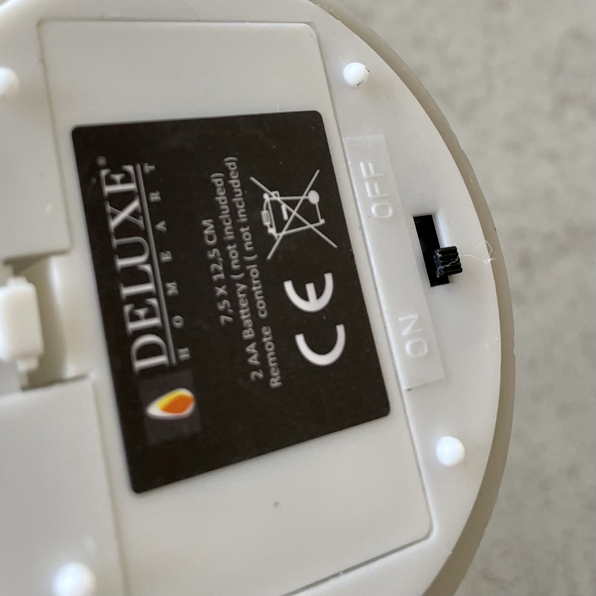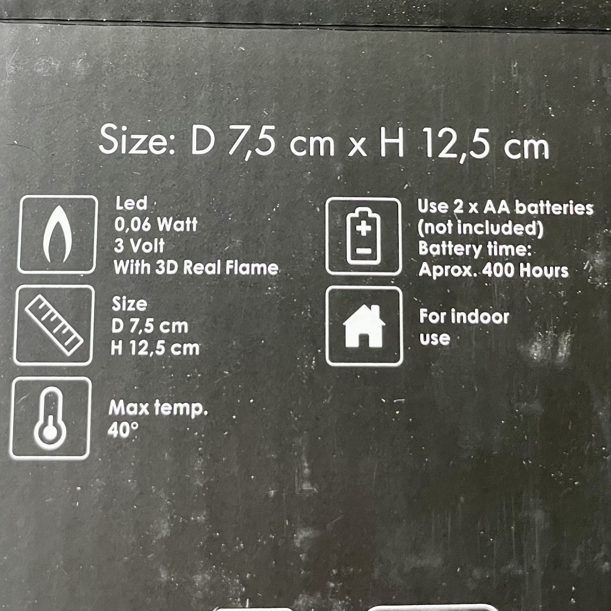 Echtwachskerze mit 3D Flamme, batteriebetrieben 2xAA (nicht inklusive), indoor mit ON/OFF Taste am Boden. Tolles natürliches Kerzenlicht mit Schmelzeffekt. Separate Fernbedienung SW17394