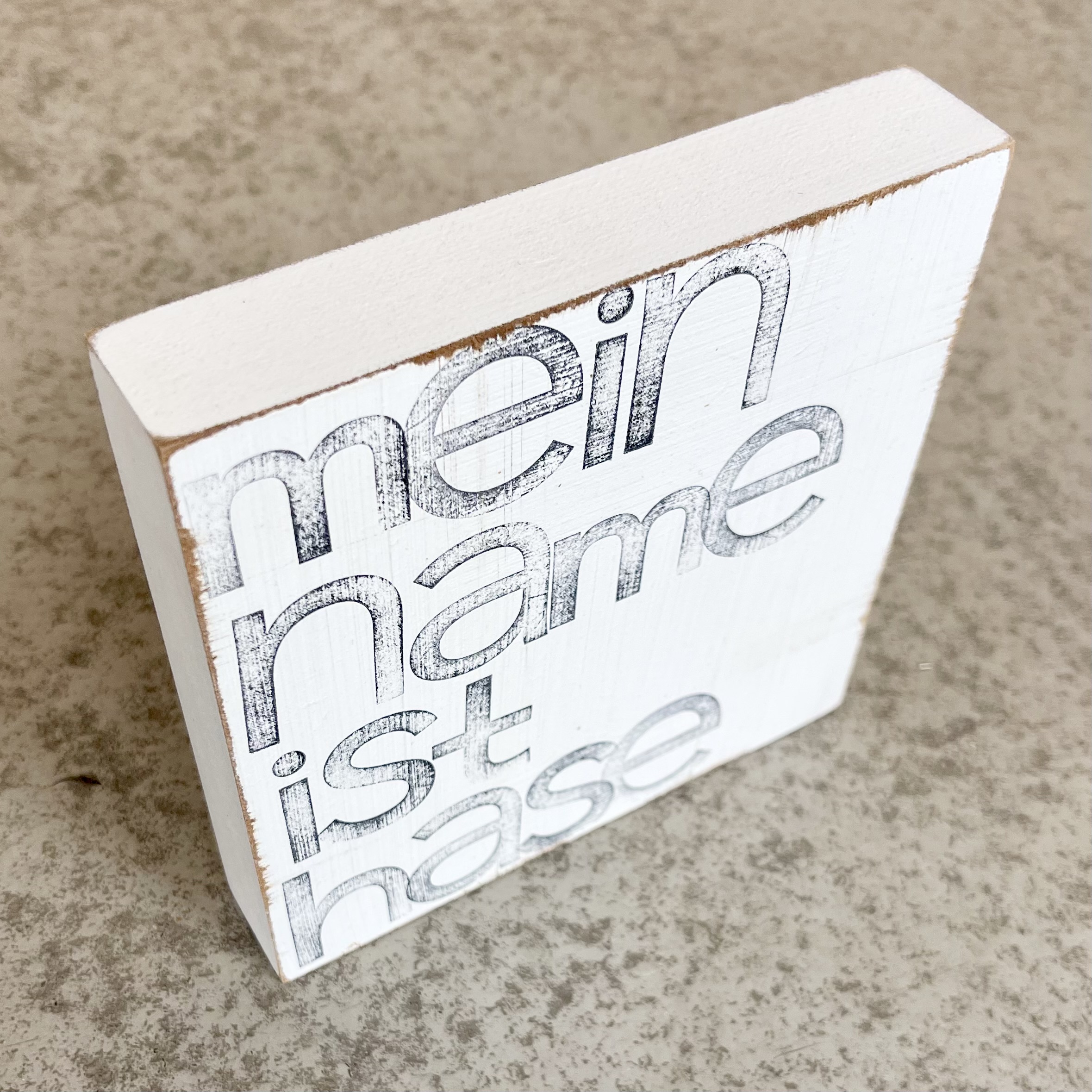 "Mein Name ist Hase" Holztafel zum Stellen oder Hängen an die Wand, ganz wie du magst.