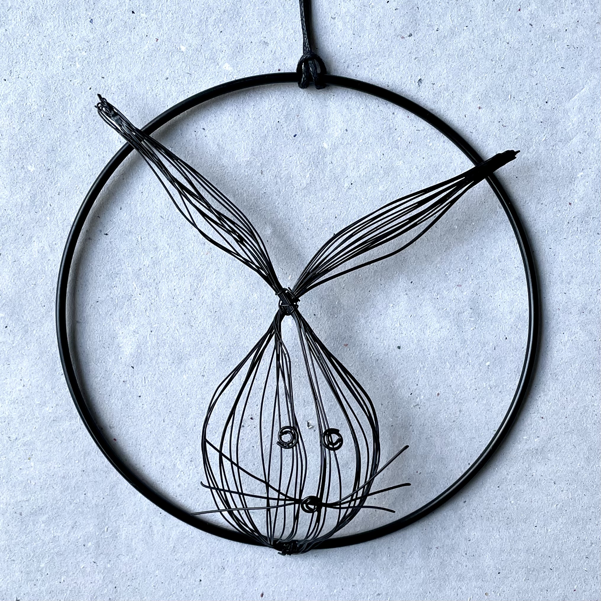 Metall-Hase "Finja" im Ring D15cm, schwarz