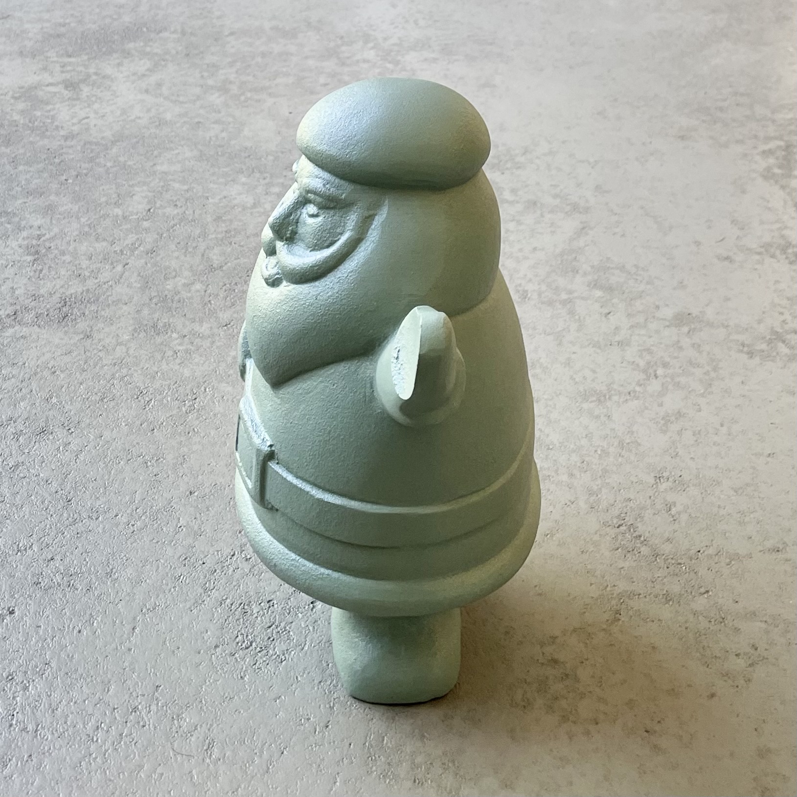 Gemütlicher Weihnachtsmann aus Alucast zum Dekorieren für den Innenbereich. Schwere Qualität, eine schöner Blickfang! Bei Feuchtigkeit wird der Santa eine Rostpatina ansetzen.
