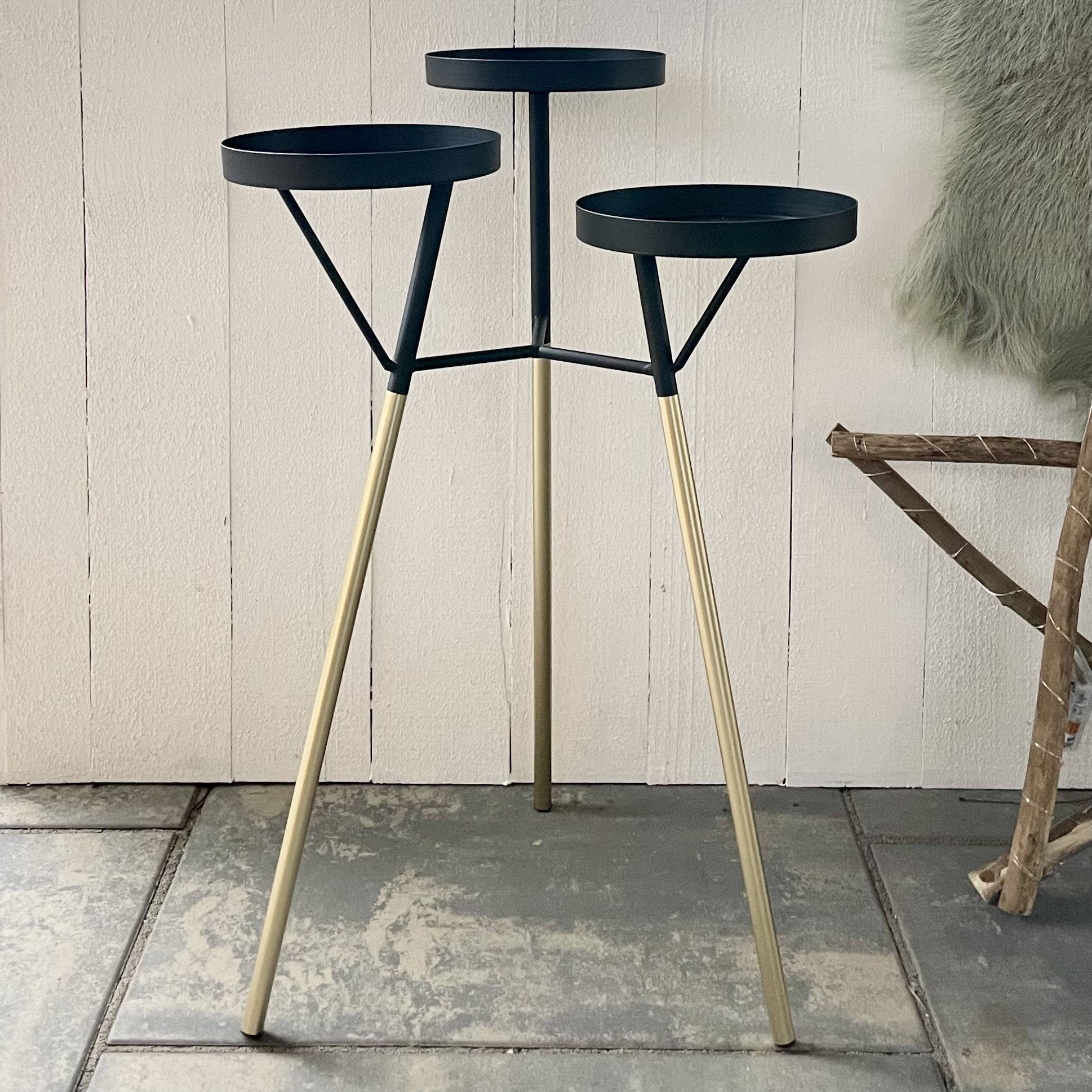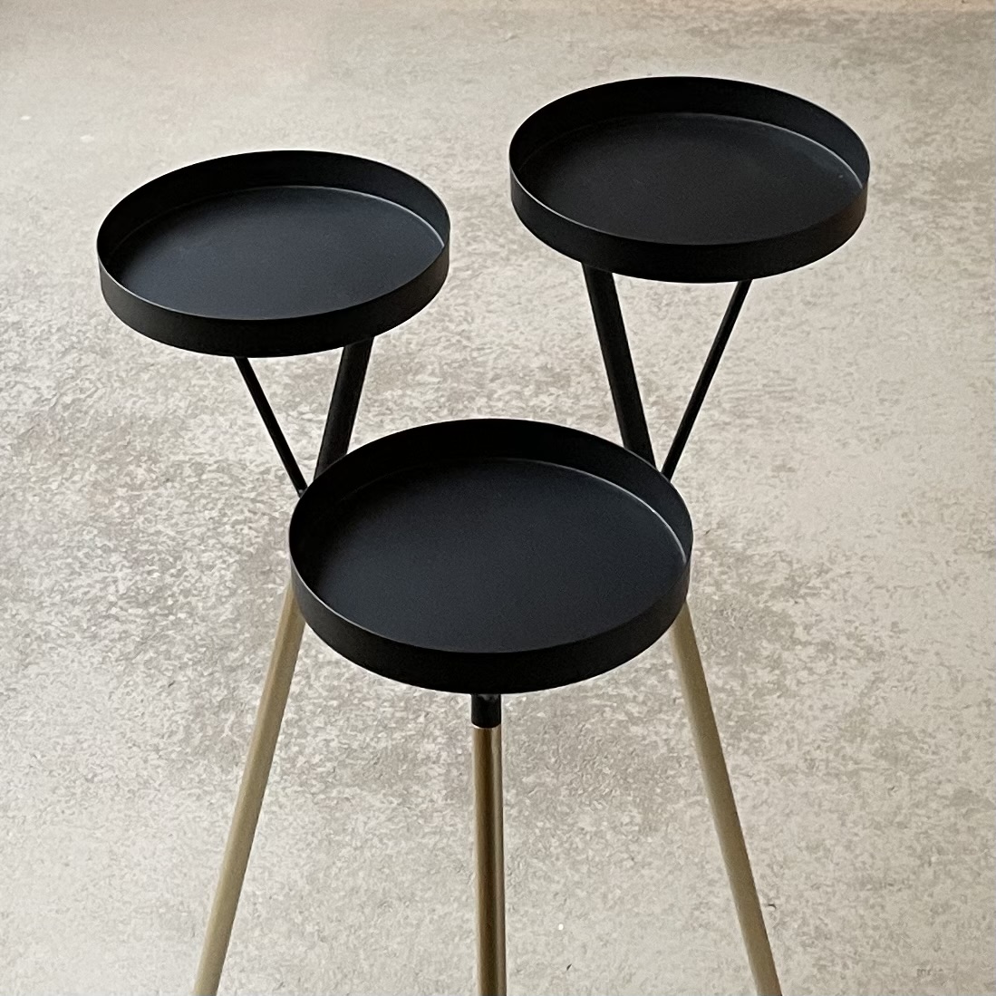 Metall-Tisch mit 3 Platten H70cm, schwarz/gold