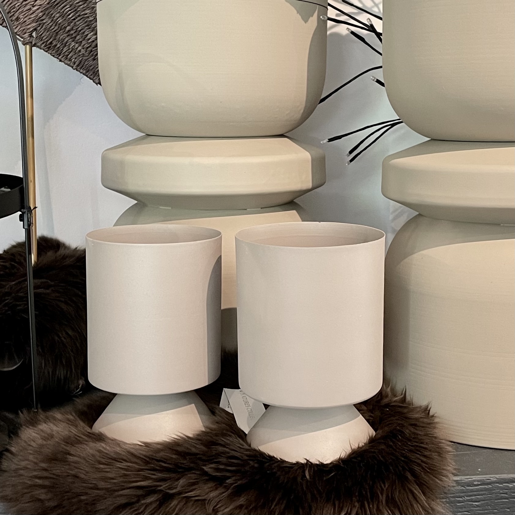 Metall-Vase "Allegra" auf Fuß H22cm, D15cm, creme