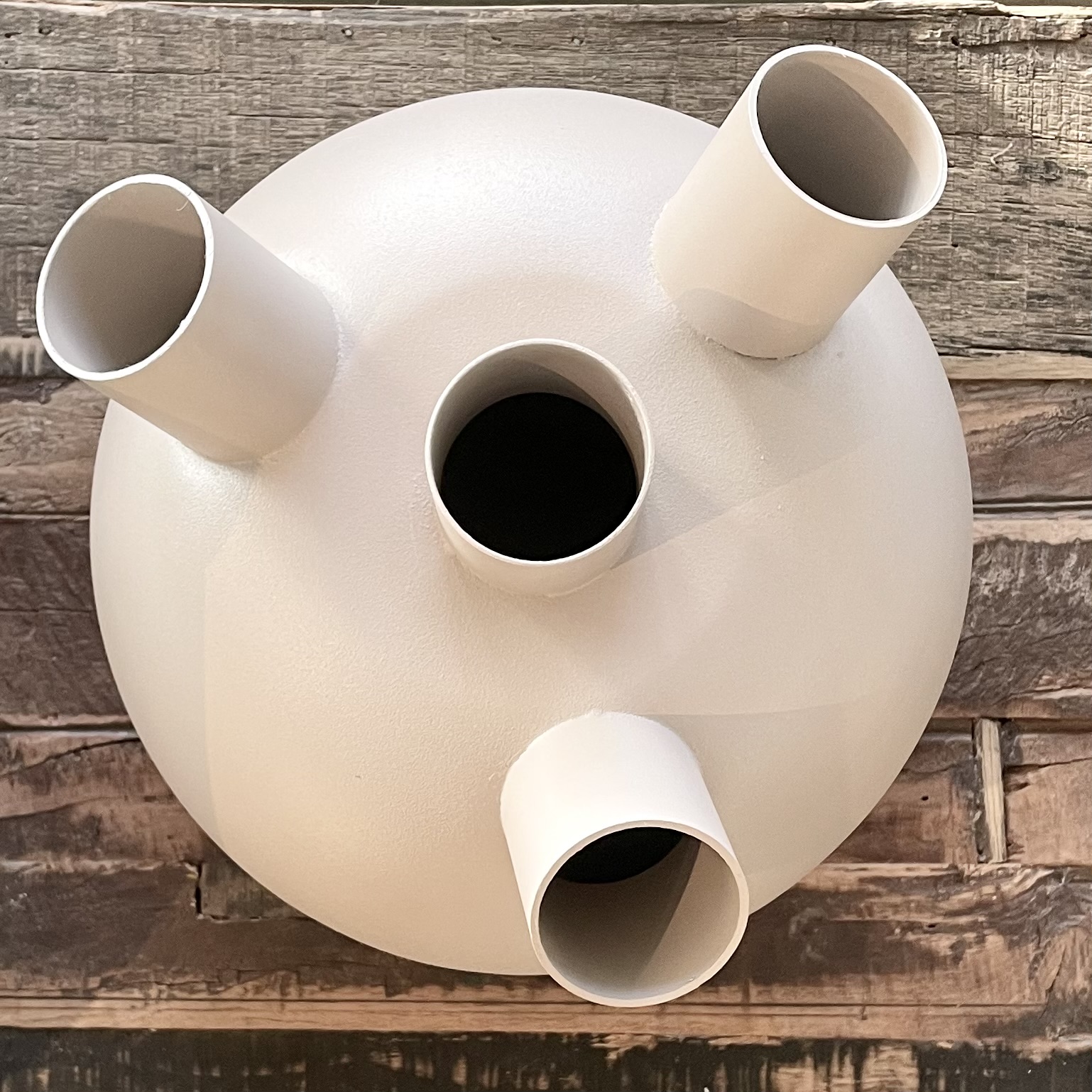 Vase im besonderen Look, grob gearbeitet mit Schweißnähten. Schöne Dekorationsmöglichkeiten mit Trockenblumen, ein echter Blickfang.