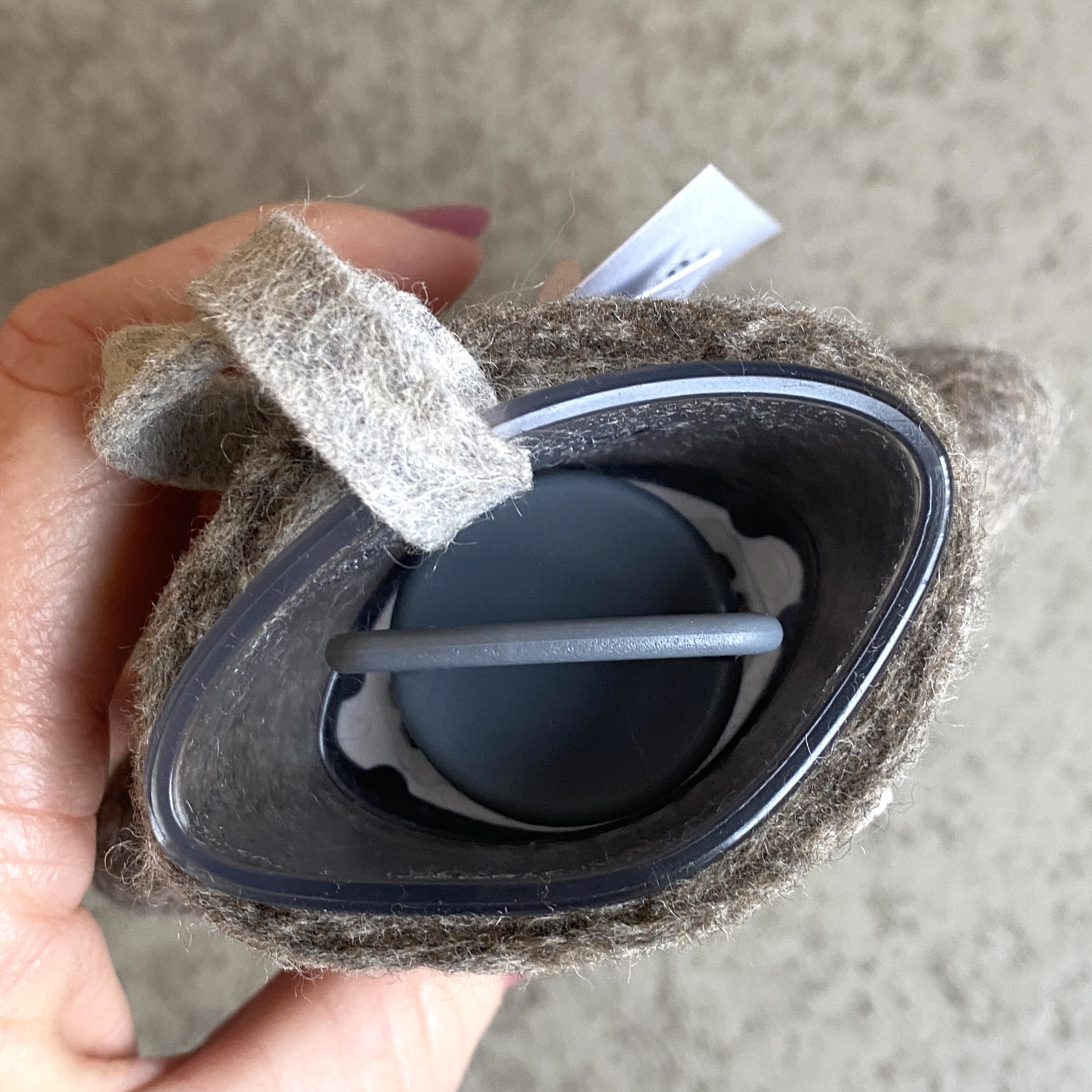 Kleine Wärmflasche aus Merinowolle gefilzt in Handarbeit. Wichtiger Hinweis: Kein kochendes Wasser verwenden! Die Flasche nur ca. zu 2/3 befüllen und vor dem Verschließen den Wasserdampf entweichen lassen. Die Innenflaschen werden in Deutschland produziert und sind TÜV-geprüft.Fassungsvermögen ca. 0,2 l,