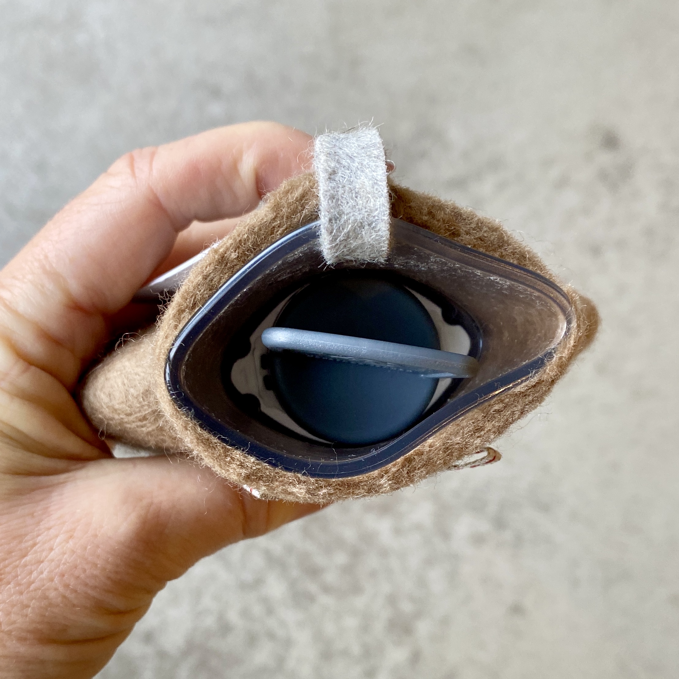 Kleine Wärmflasche aus Merinowolle gefilzt in Handarbeit. Wichtiger Hinweis: Kein kochendes Wasser verwenden! Die Flasche nur ca. zu 2/3 befüllen und vor dem Verschließen den Wasserdampf entweichen lassen. Die Innenflaschen werden in Deutschland produziert und sind TÜV-geprüft.Fassungsvermögen ca. 0,2 l, Maße ca. 12 x 16 cm. Die Wärmflaschen können mit ihrer Hülle im Wollprogramm der Waschmaschine bei 30°C gewaschen werden.