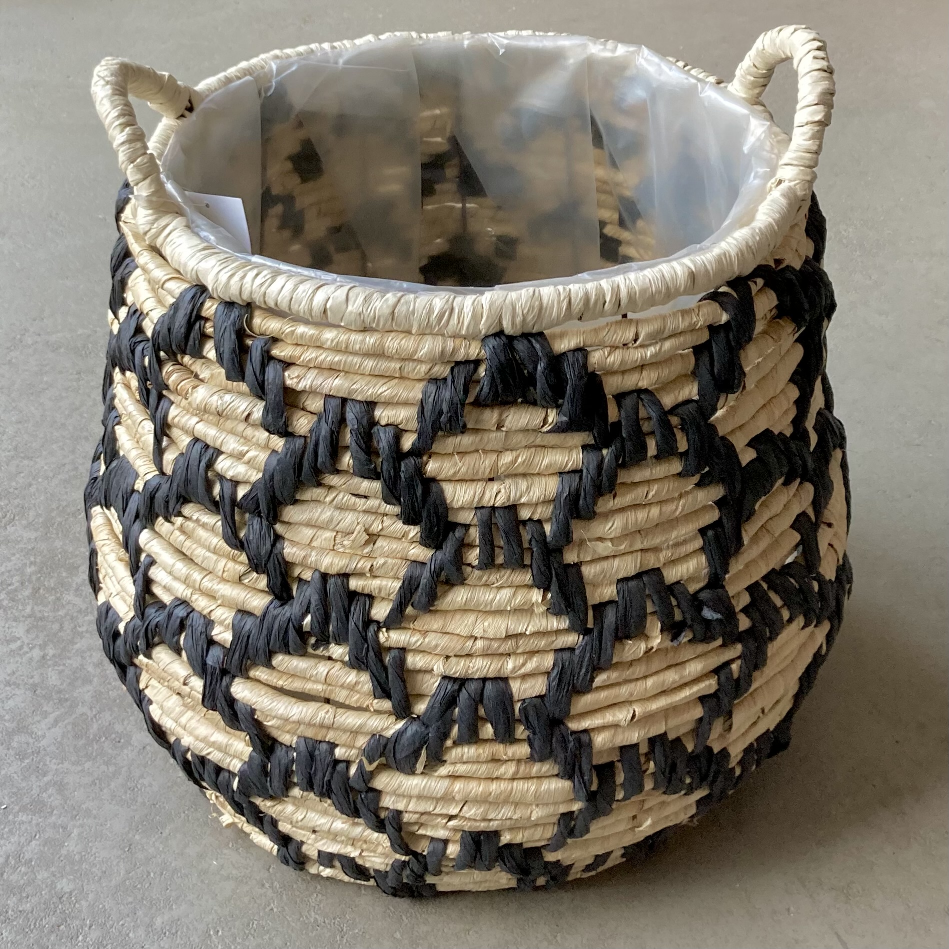 Korb mit Folie ausgekleidet für Pflanzen oder zur Aufbewahrung.