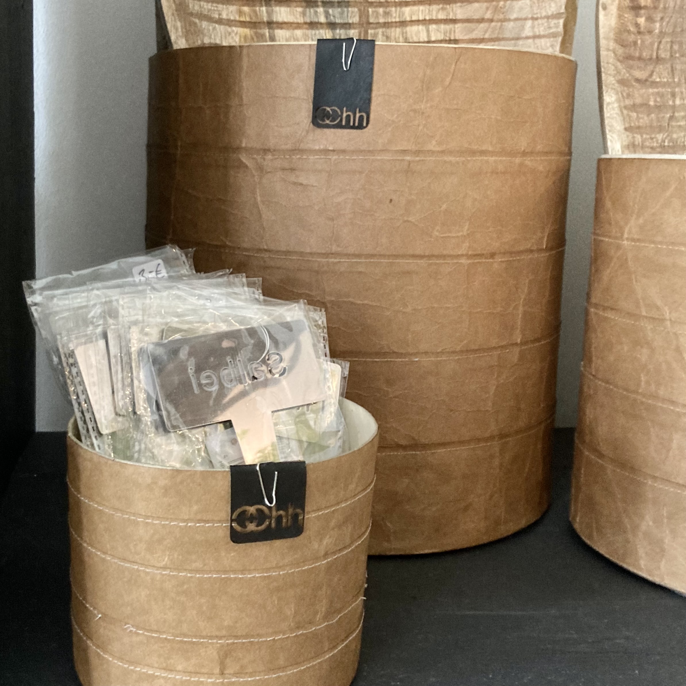 OOhh-Topf aus recyceltem Papier gestreift genäht natur H17 D17