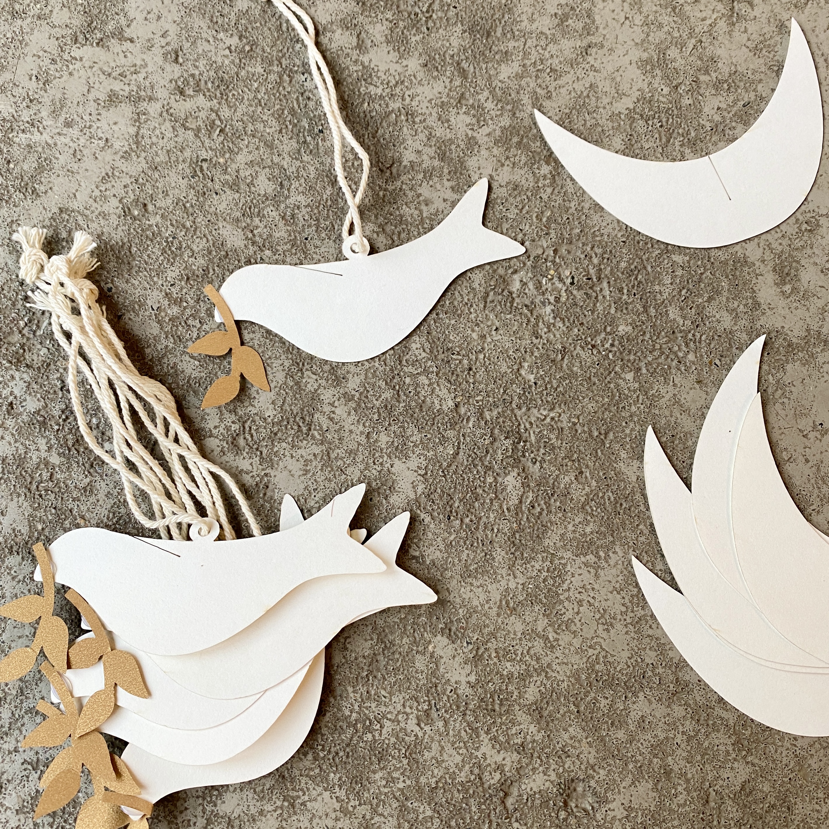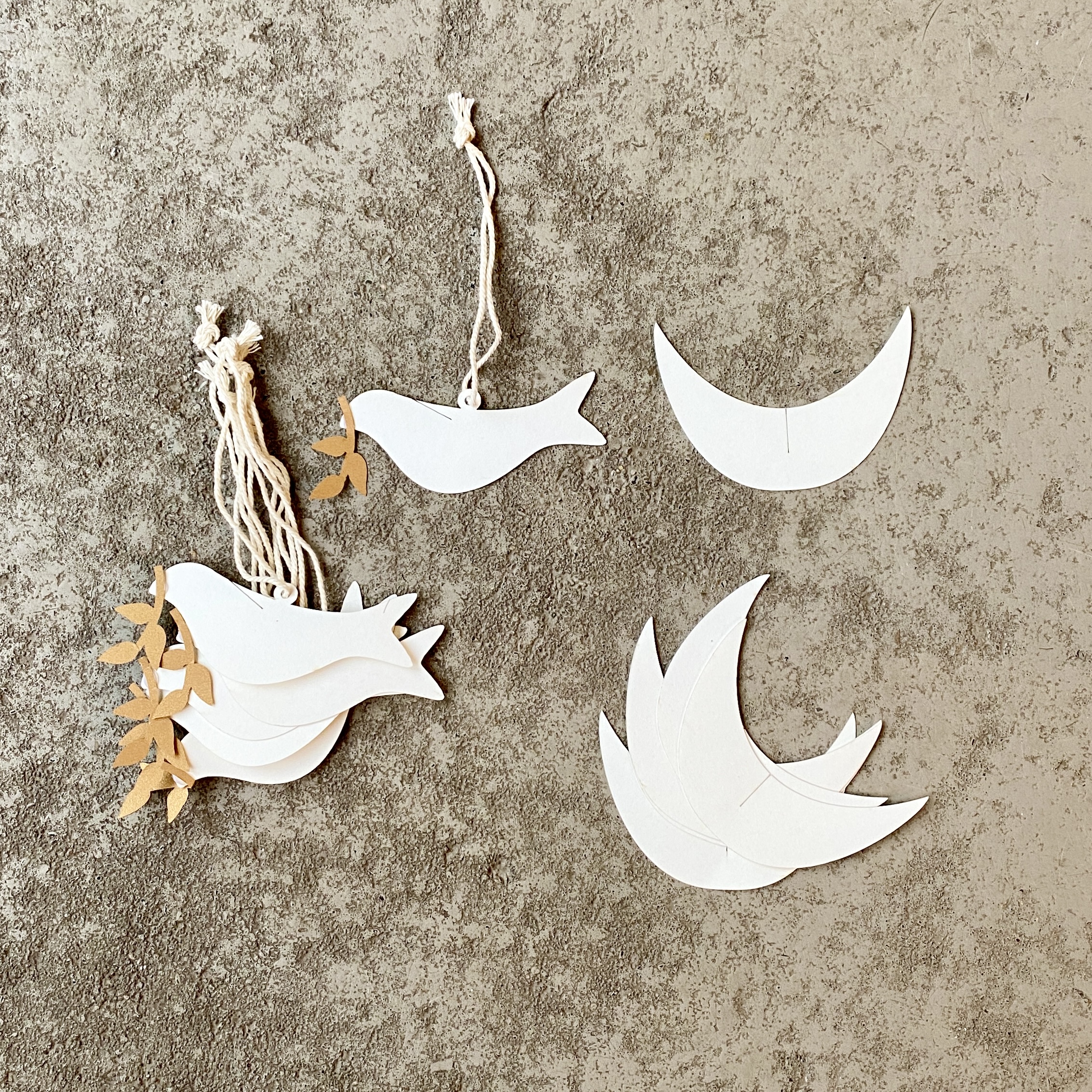 12teiliges Set aus Papier zum zusammenstecken für 6 Tauben.