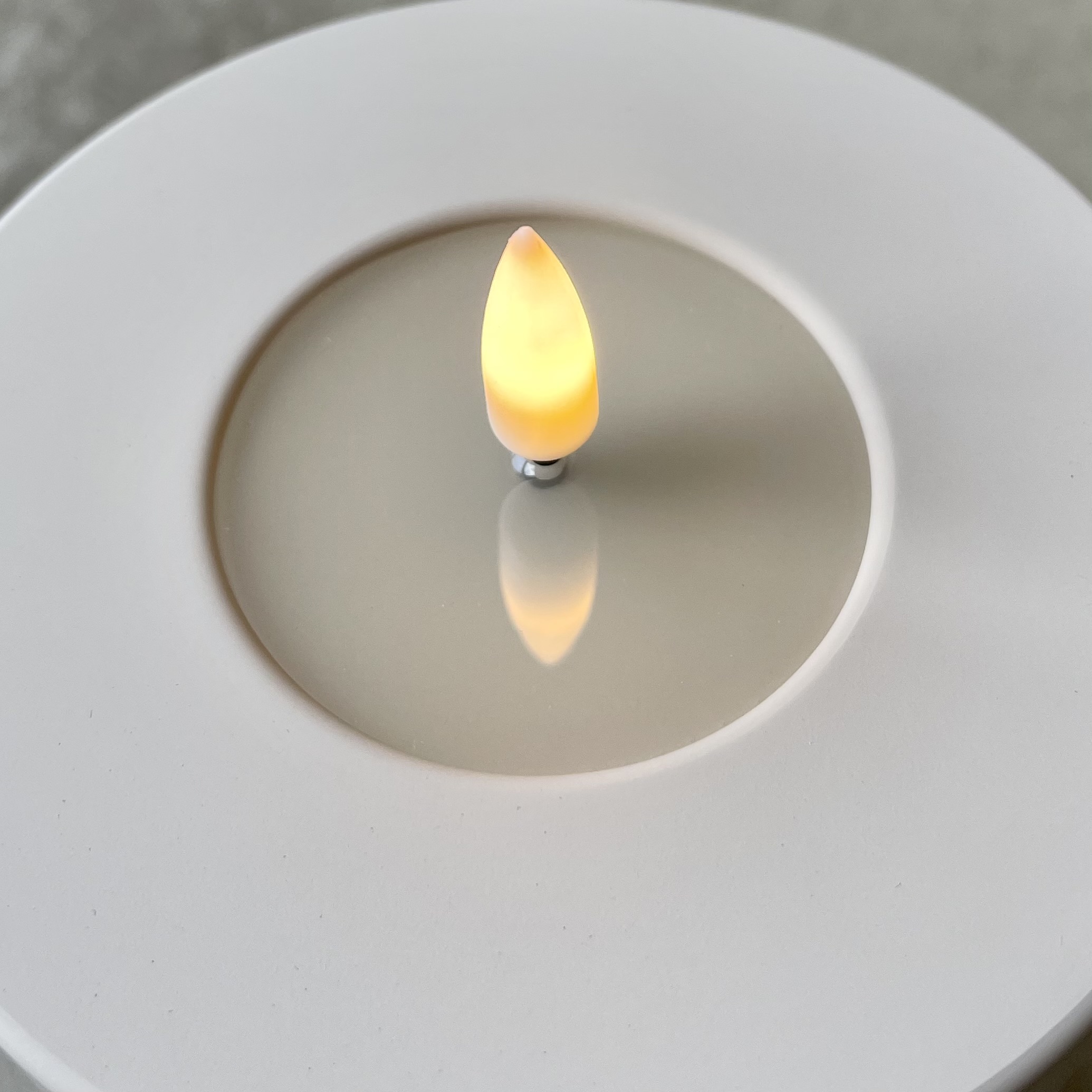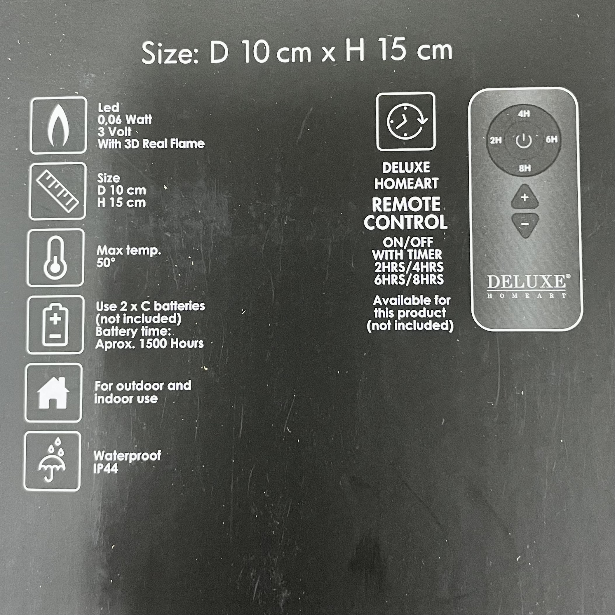 Kerze aus Kunststoff mit 3D Flamme, batteriebetrieben 2xC, LR14(nicht inklusive), outdoor mit ON/OFF Taste am Boden und Verschraubung gegen Feuchtigkeit. Tolles natürliches Kerzenlicht mit Schmelzeffekt.