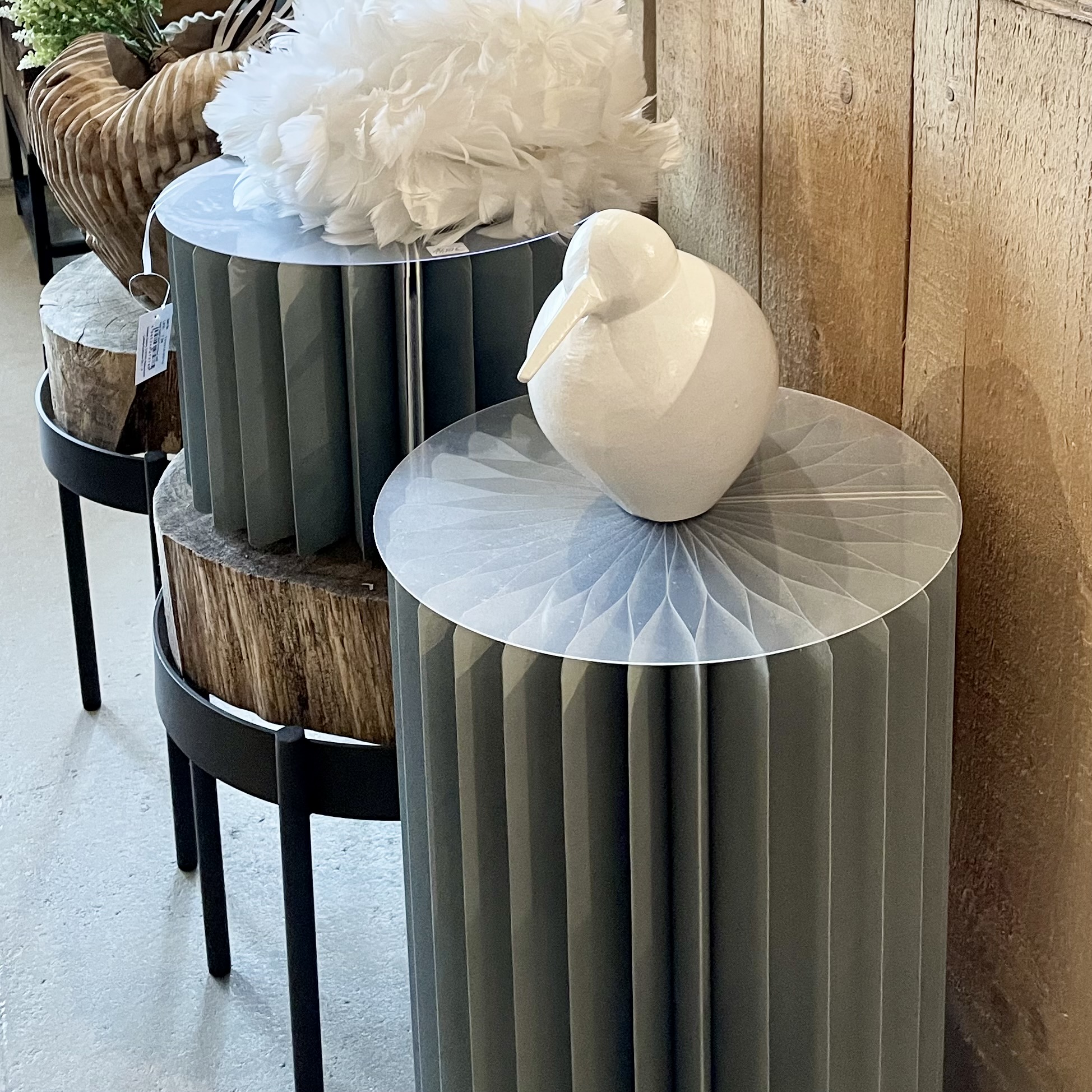 Papier-Säule D30cm, H60cm, faltbar grau mit Plexiglasplatte