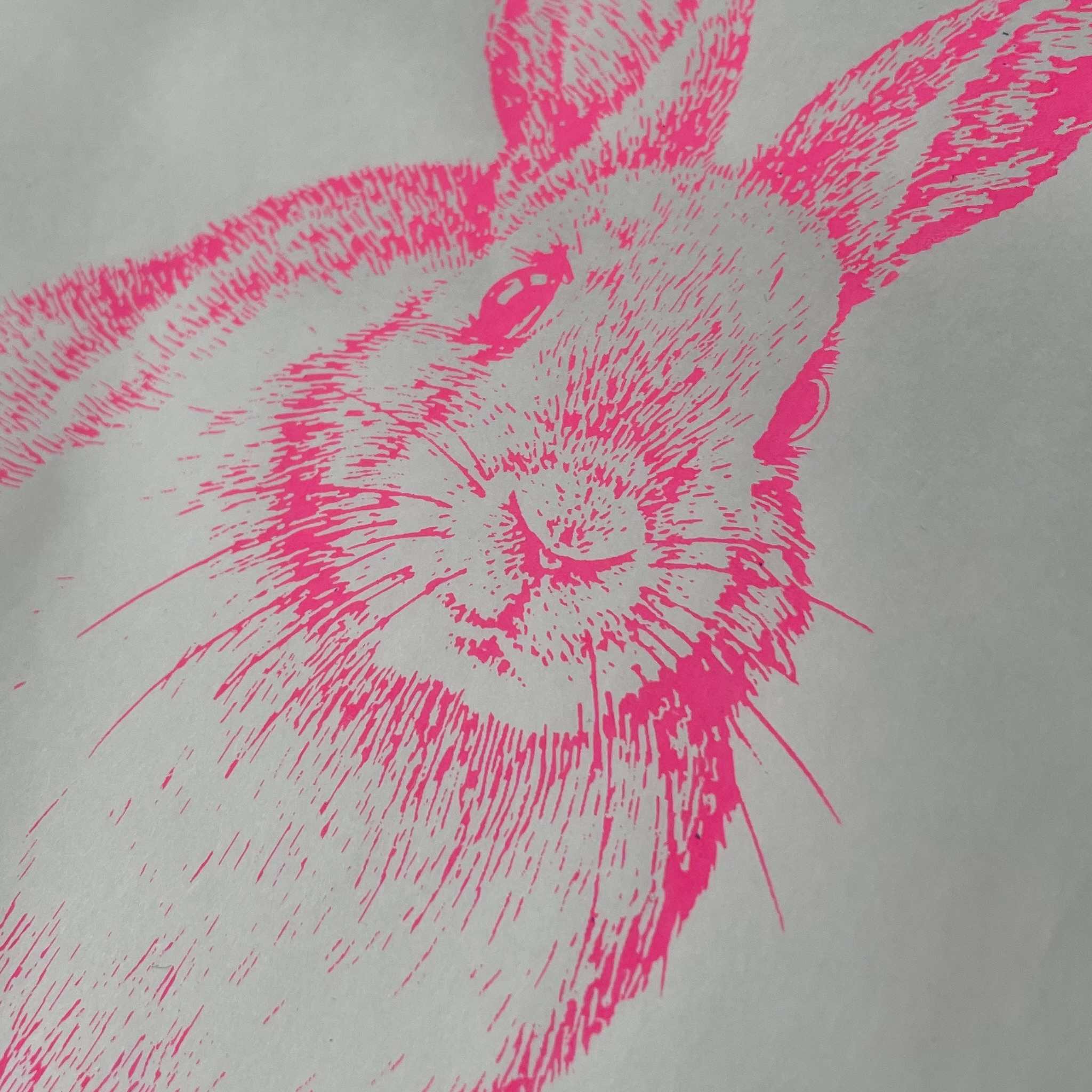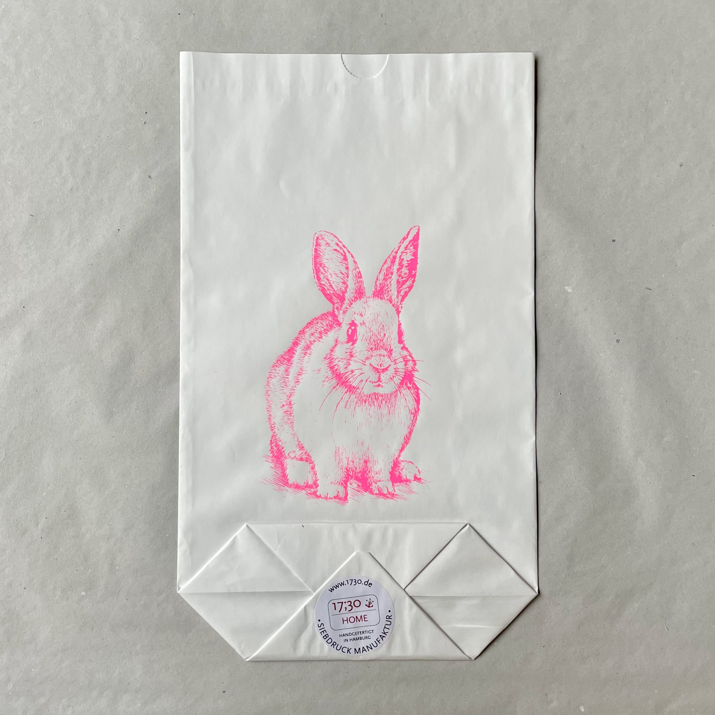 Papiertüte mit Neon-Druck, Motiv Hase, Handarbeit. Eine schöne Verpackung für kleine Geschenke.