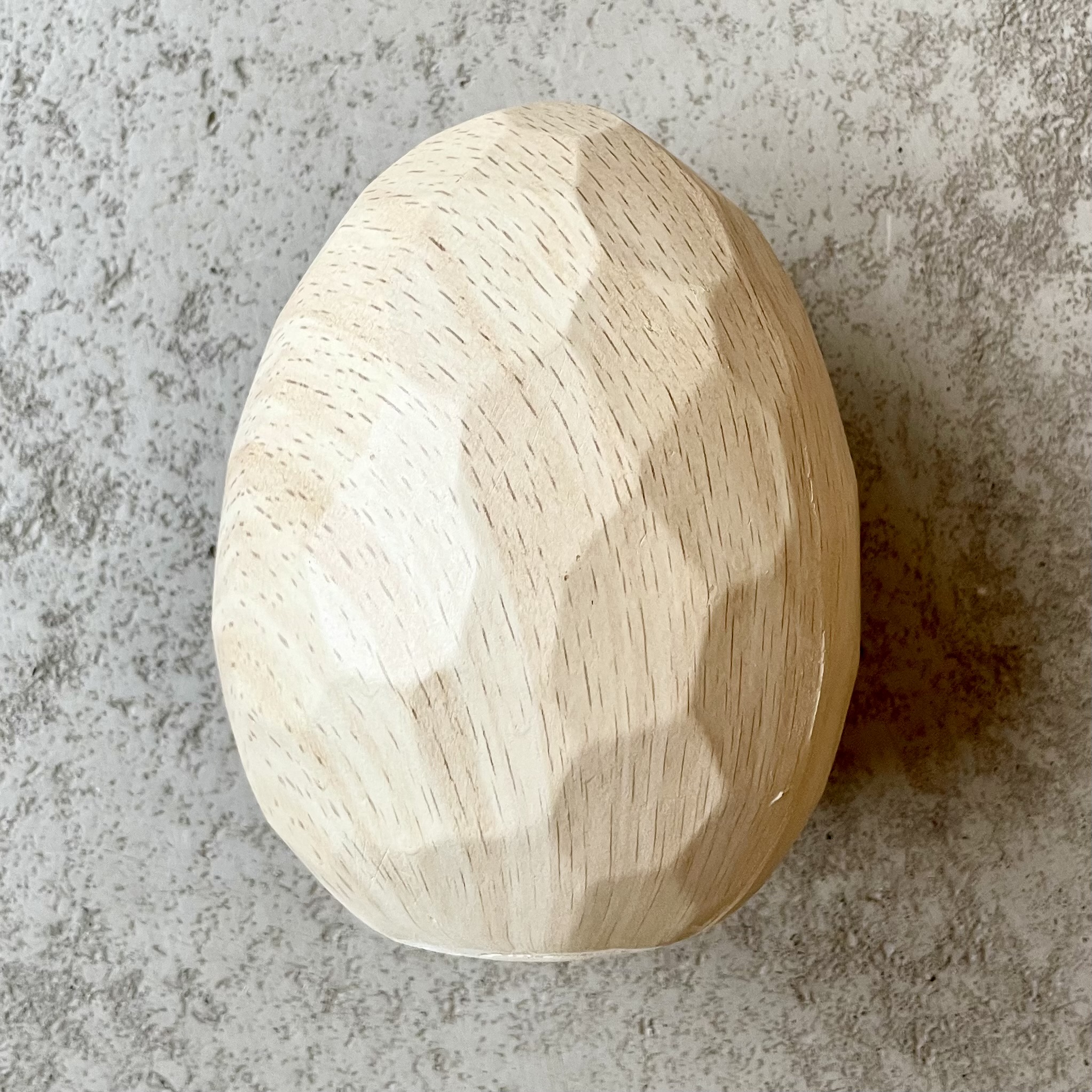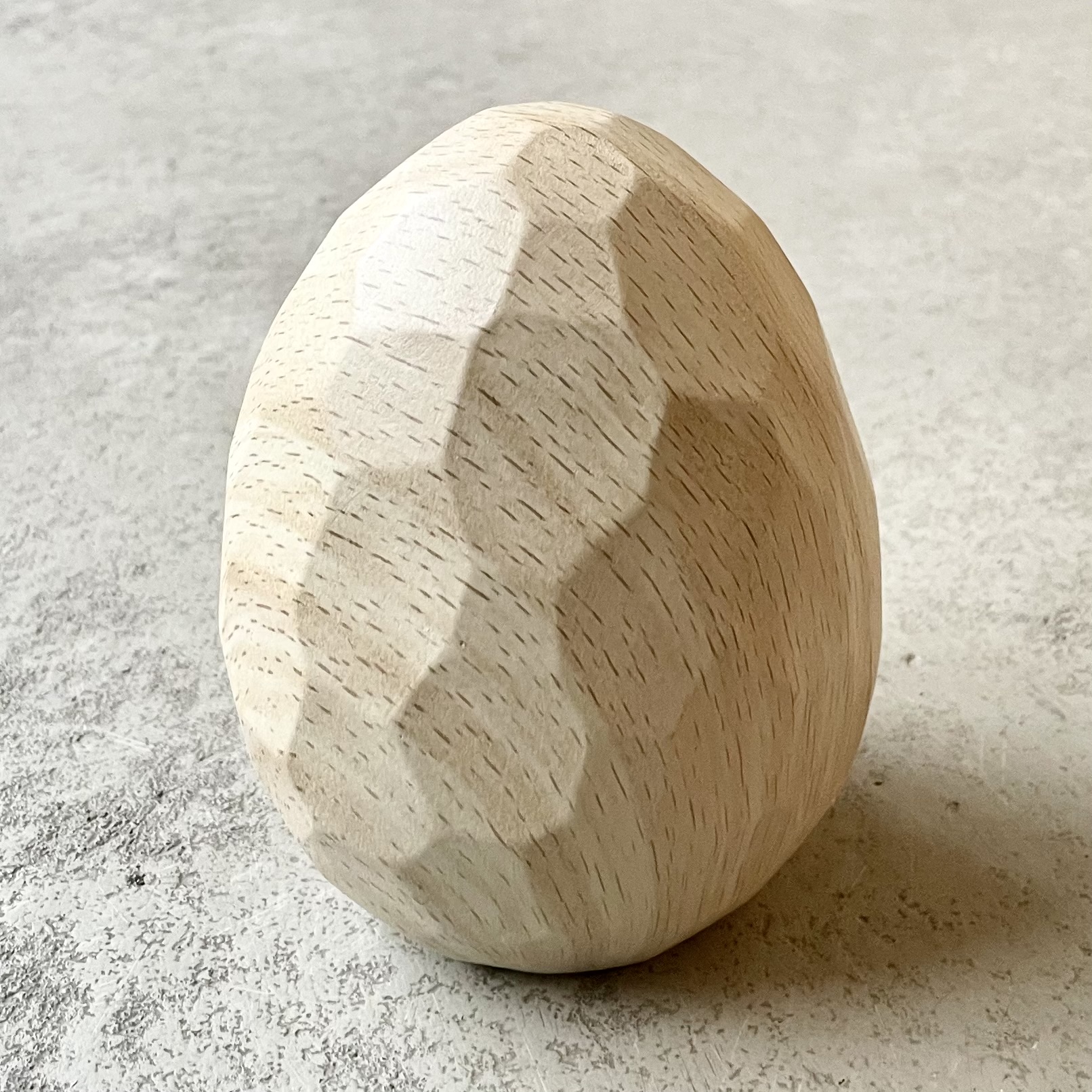 Ei in kantiger Form in Hellbraun zum Stellen.