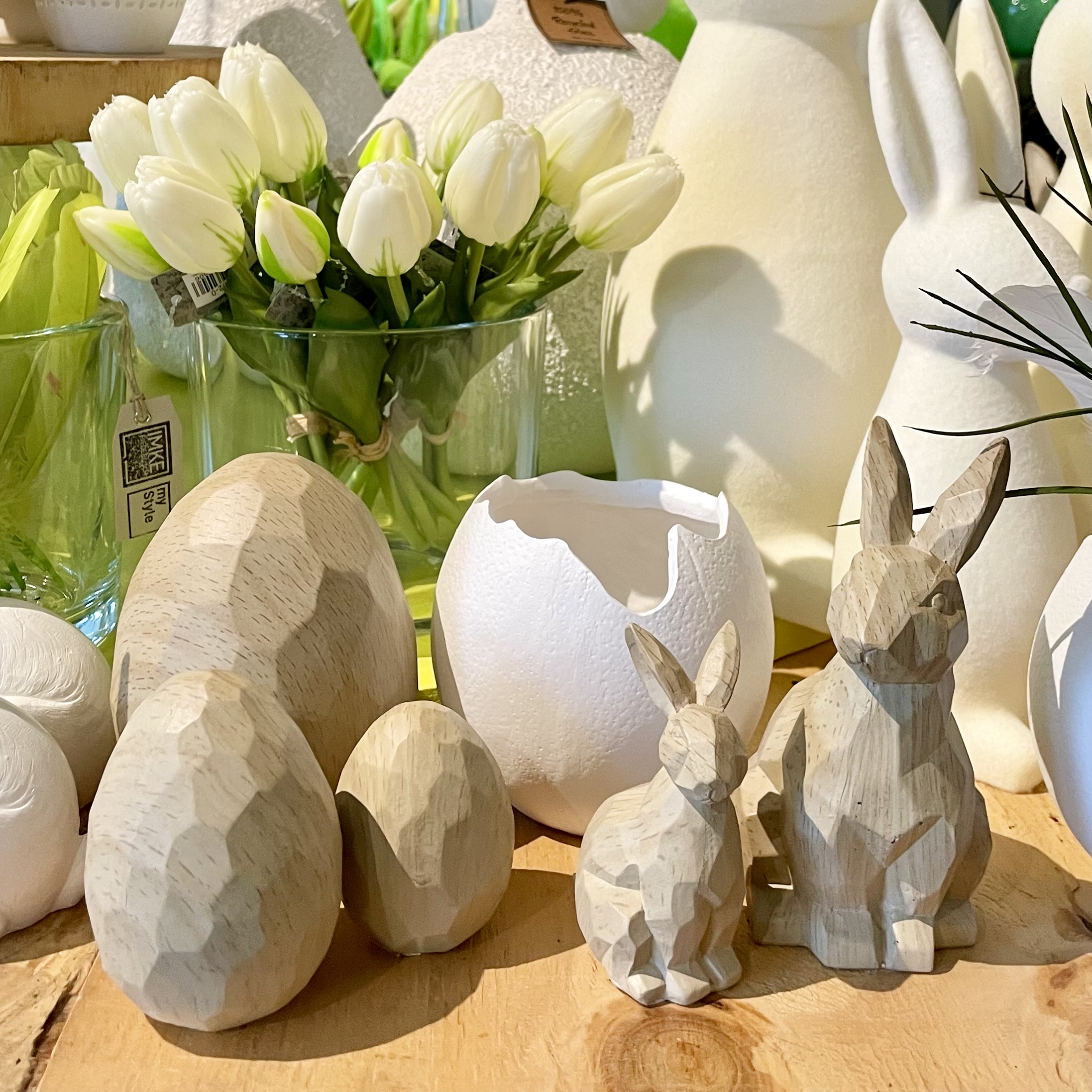 Poly-Ei "Helene" H14,5cm, Holzoptik, hellbraun