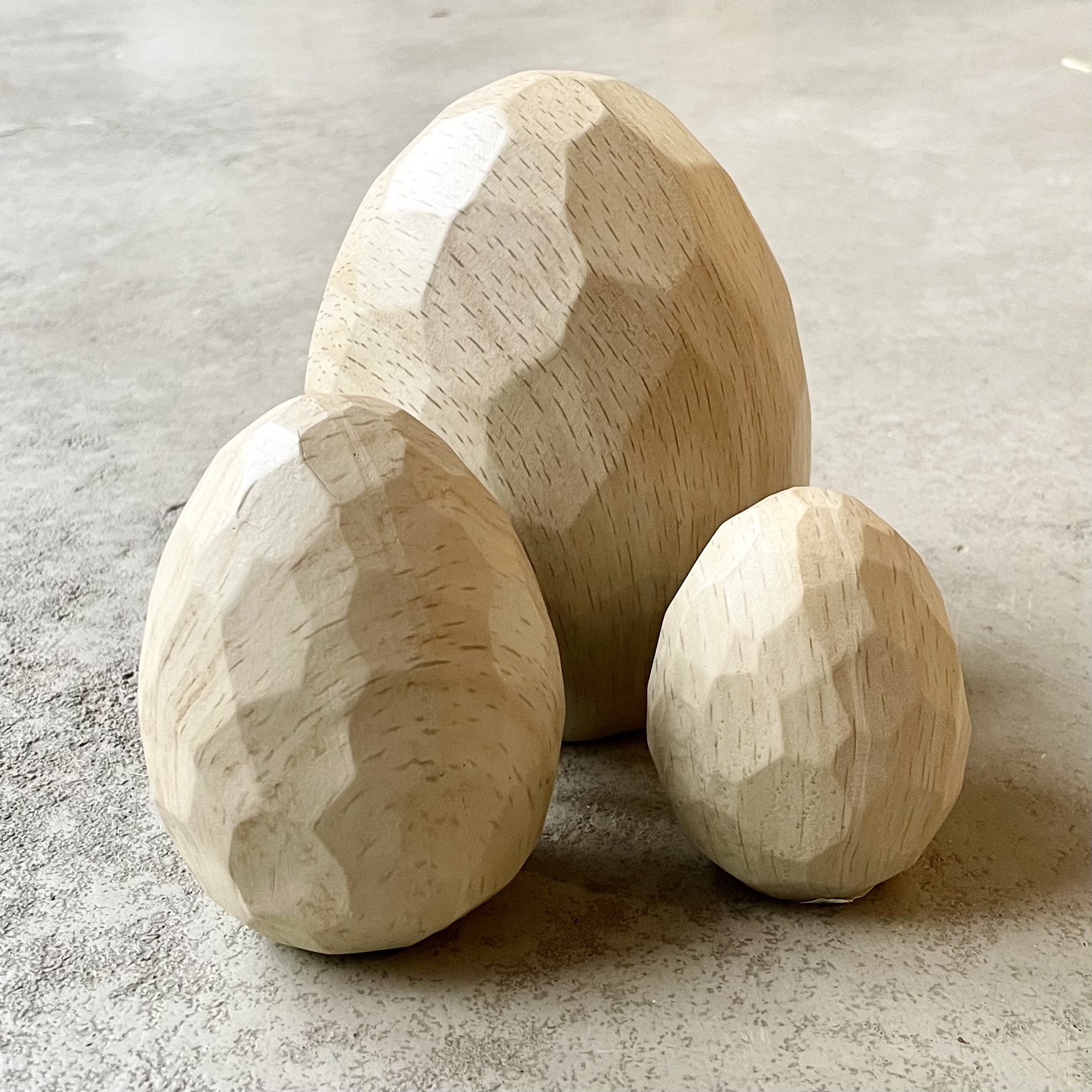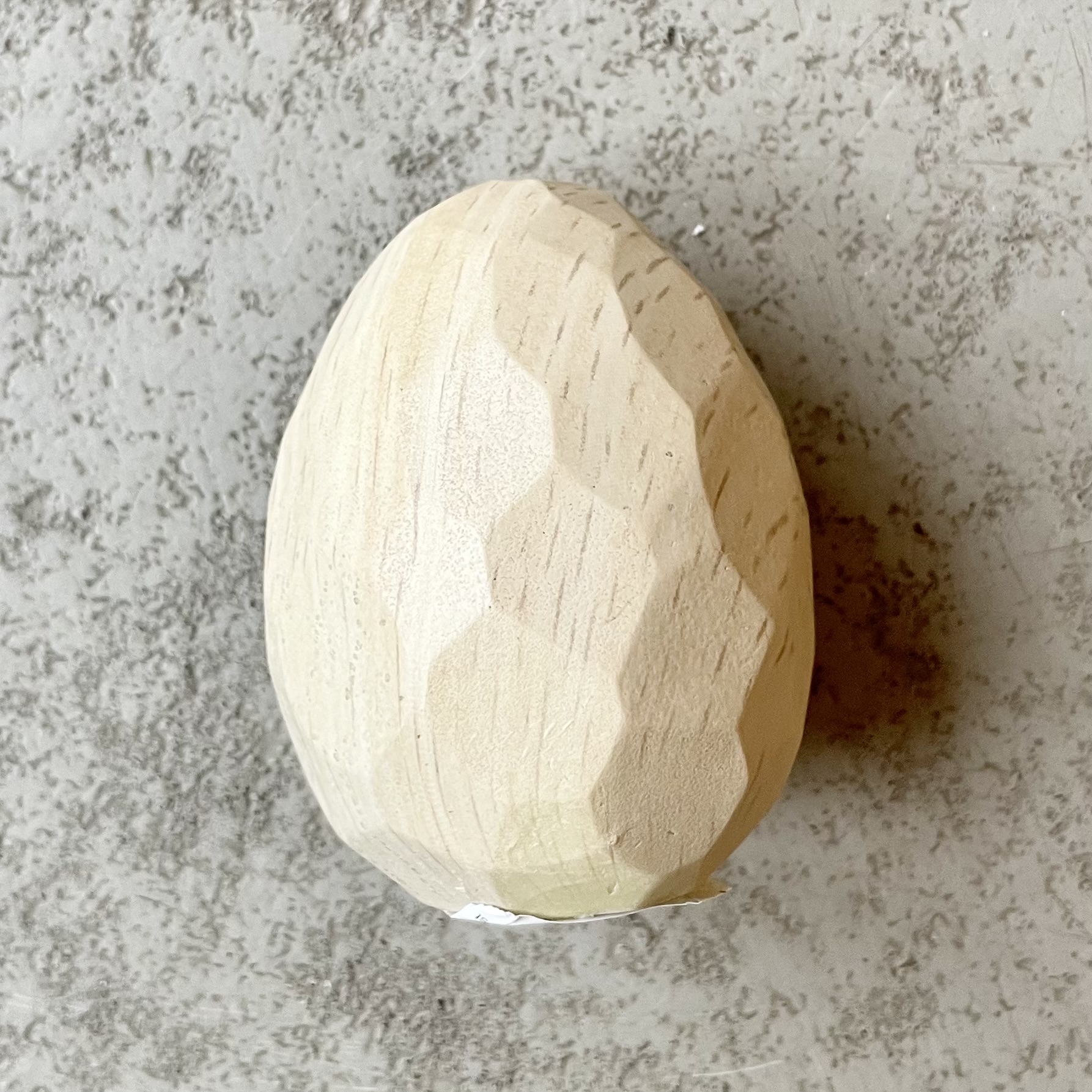 Ei in kantiger Form in Hellbraun zum Stellen.