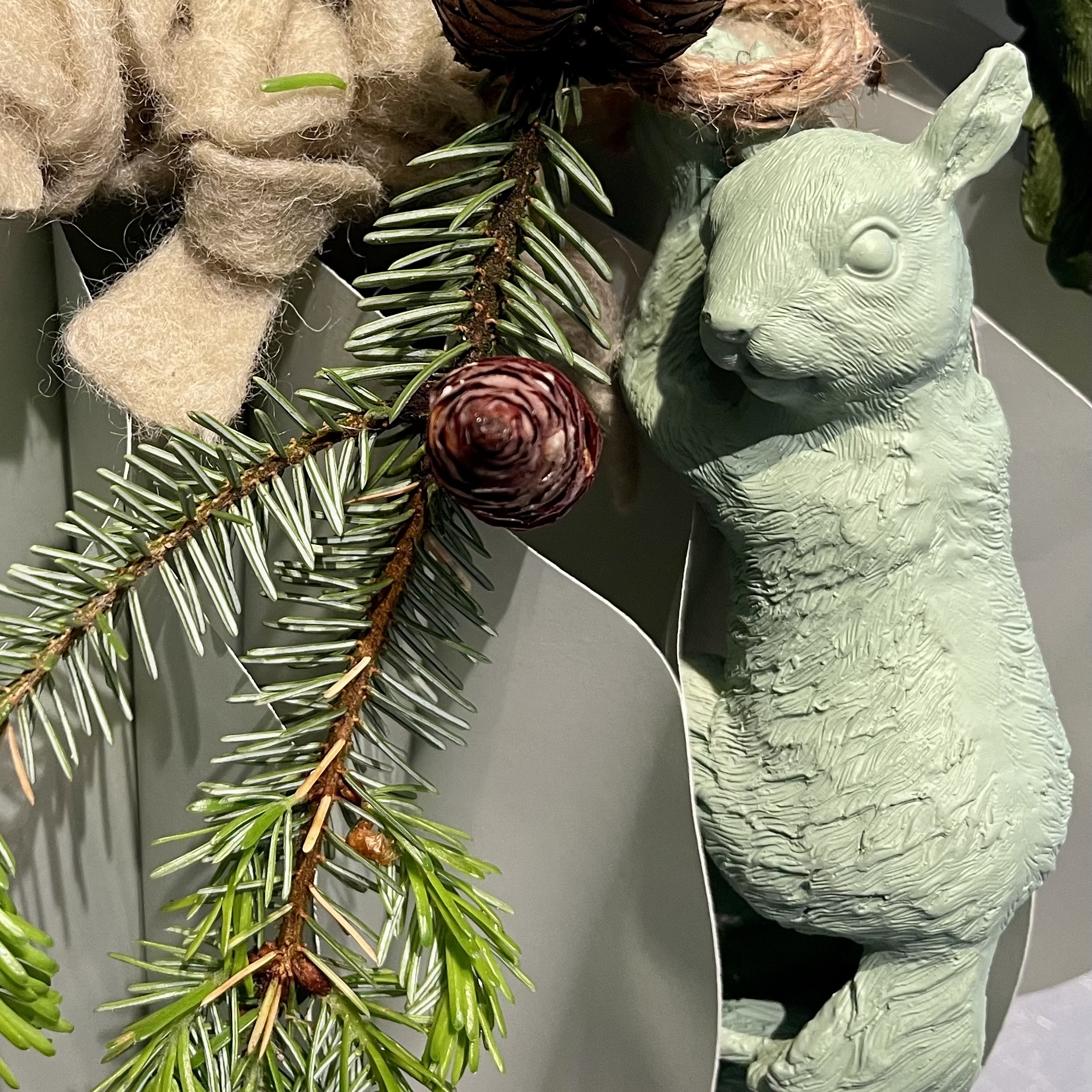 Kletterndes Eichhörnchen aus Polyresin für deine Dekoration. Schöner Blickfang auf Kränzen. Lieferung erfolgt ohne Dekoration.