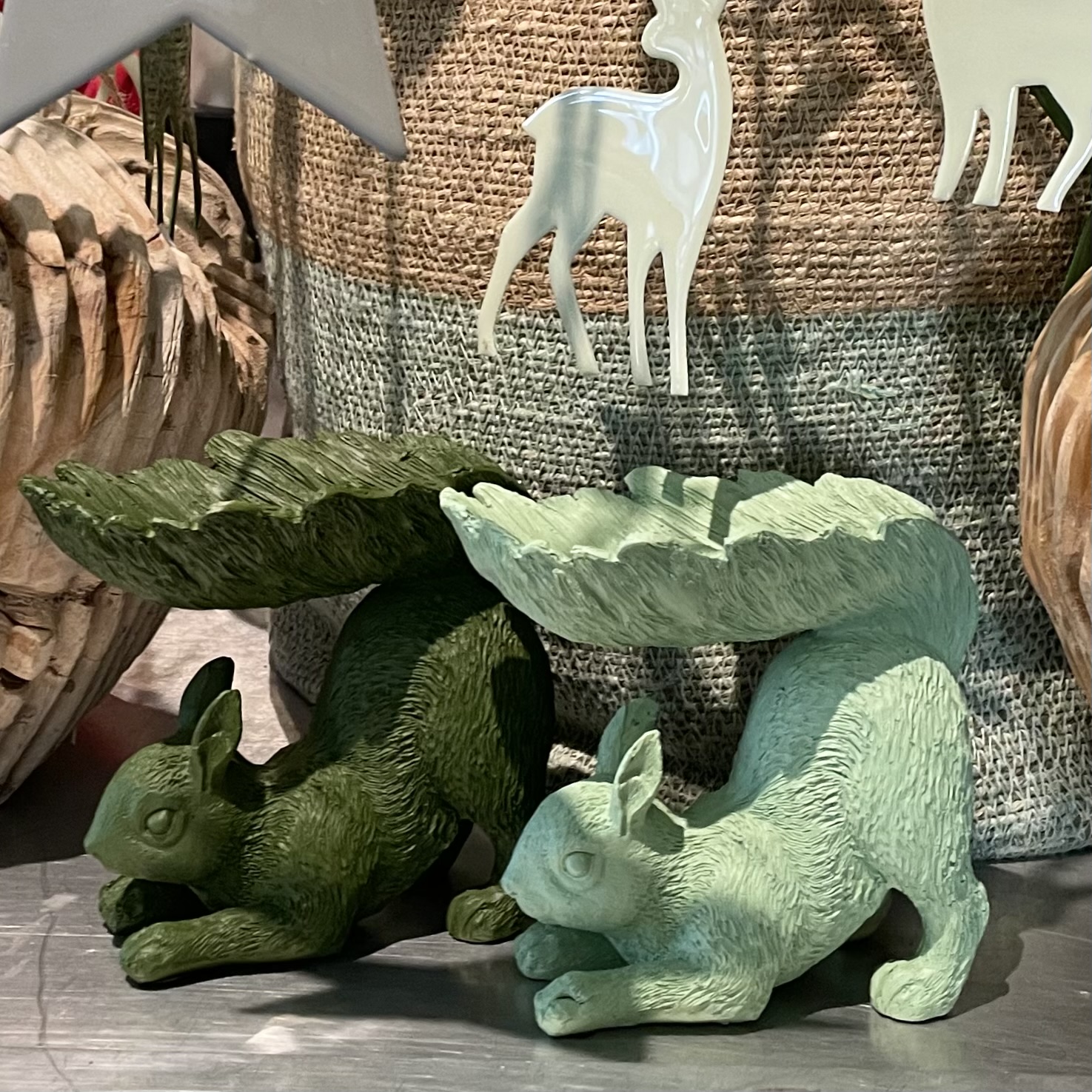 Eichhörnchen aus Polyresin mit Schale für Nüsse, Eicheln oder Kastanien.
