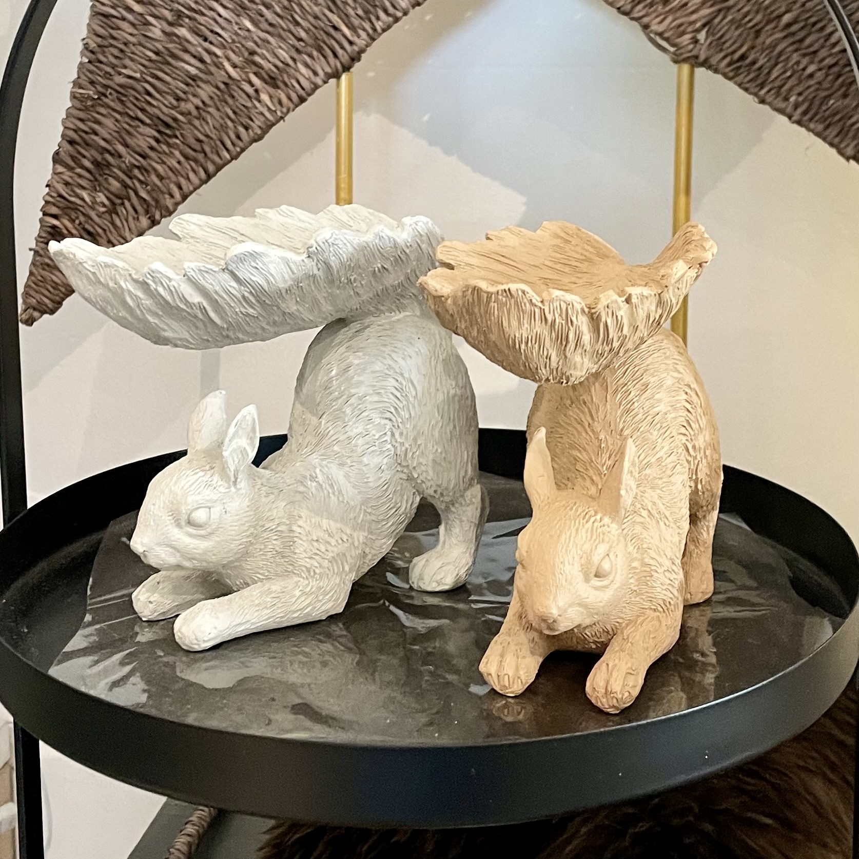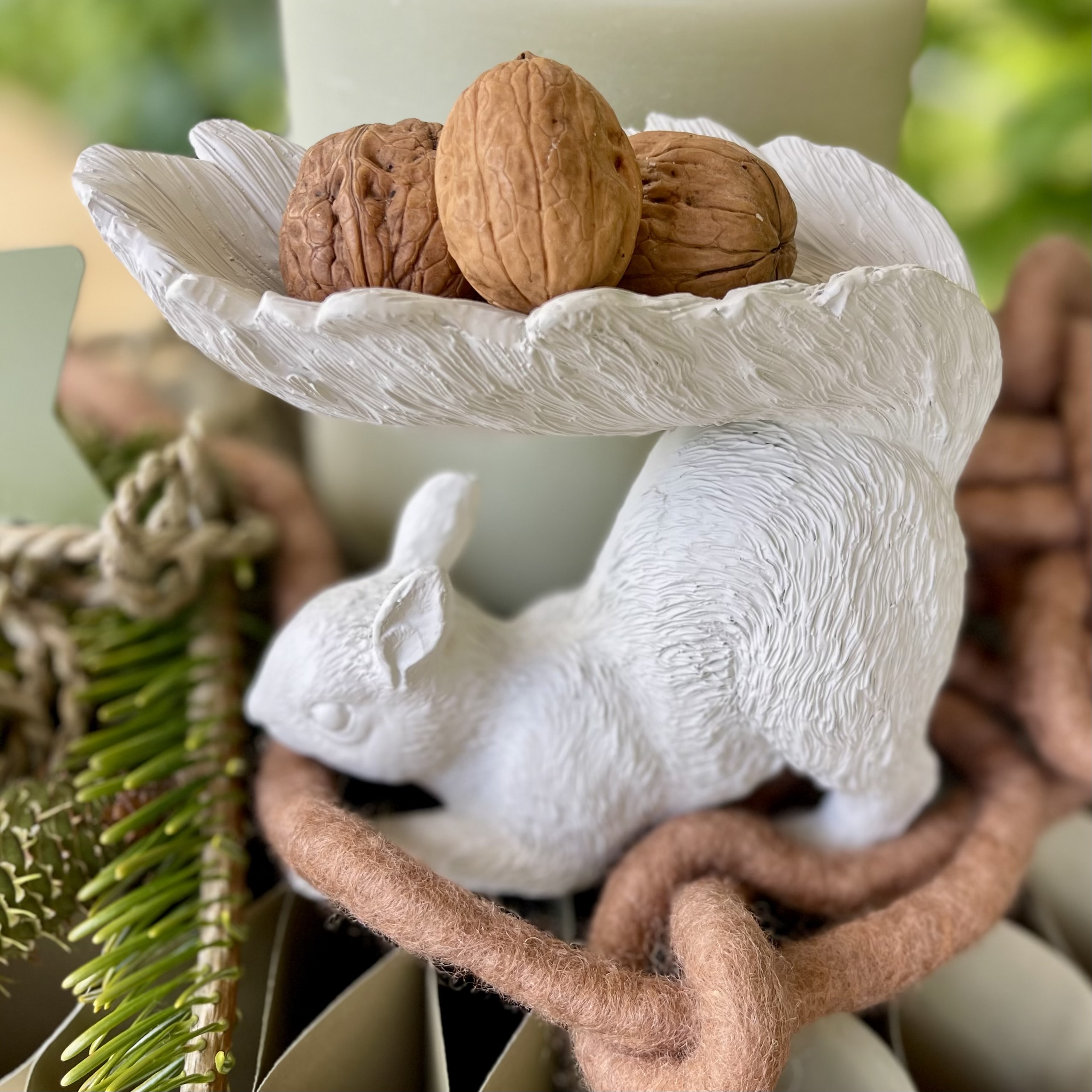 Eichhörnchen aus Polyresin mit Schale für Nüsse, Eicheln oder Kastanien.