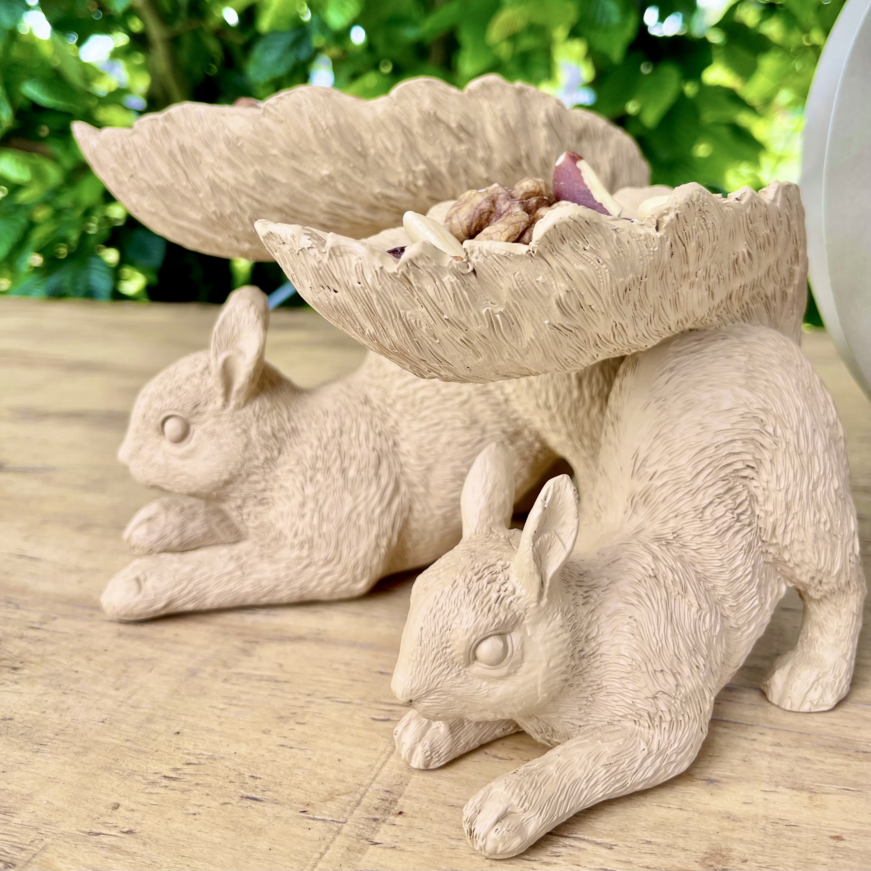 Eichhörnchen aus Polyresin mit Schale für Nüsse, Eicheln oder Kastanien.