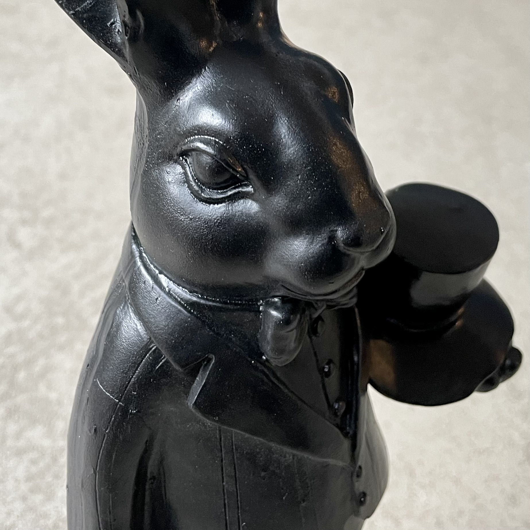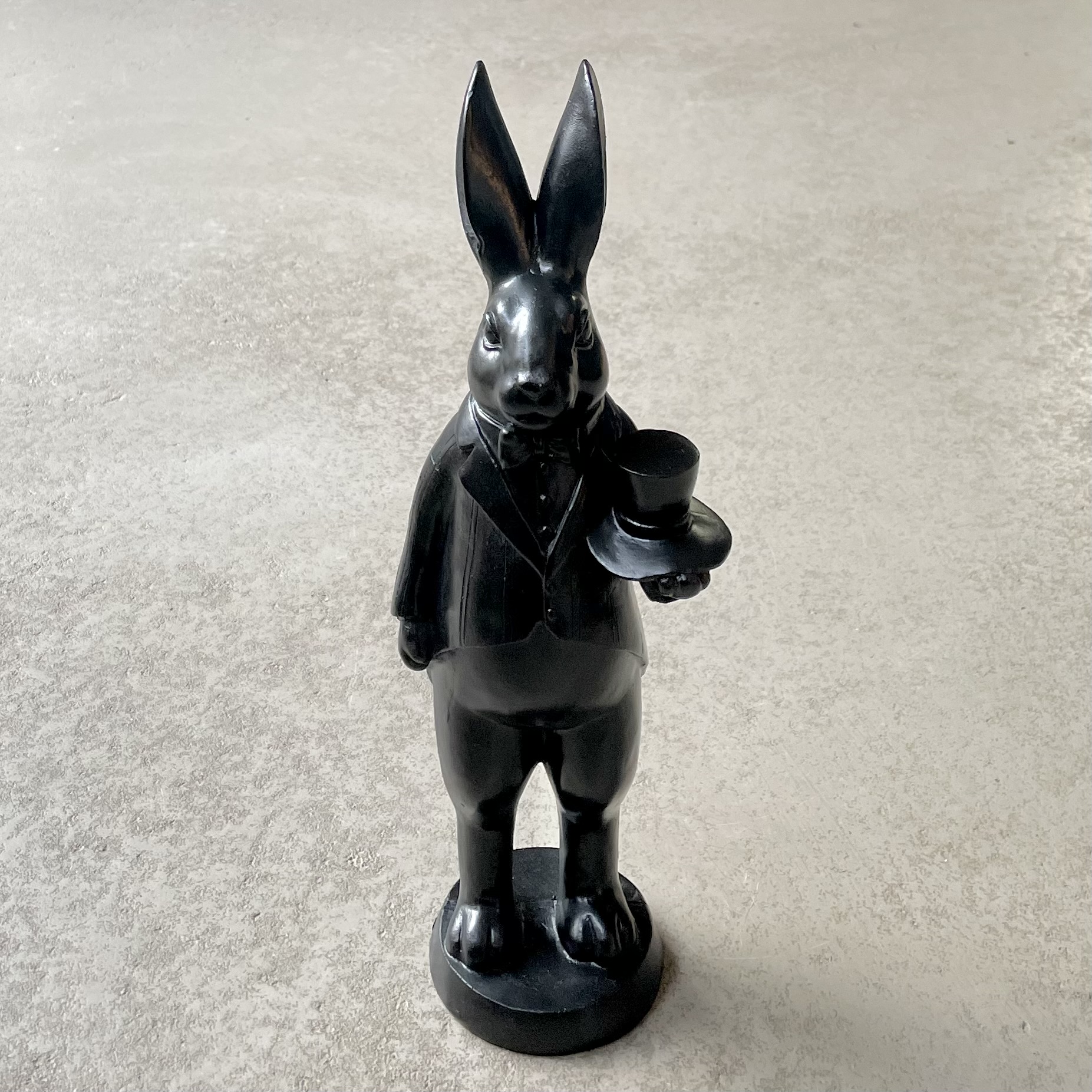 Ein stattlicher Hase aus Polyresin in Schwarz, perfekt für die Ostertafel.