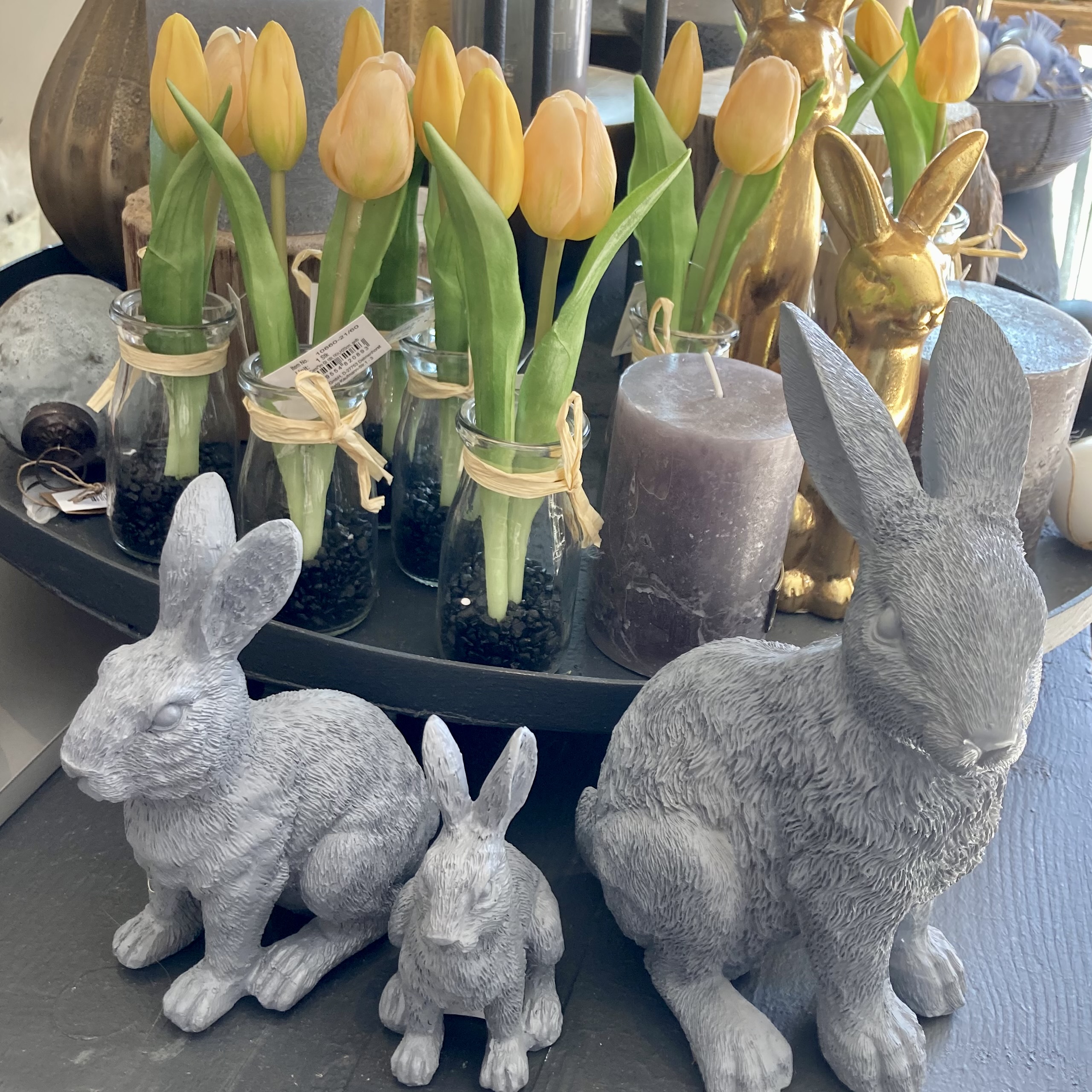 Hase aus Polyresin mit schöner Fellzeichnung für deine Osterdekoration.