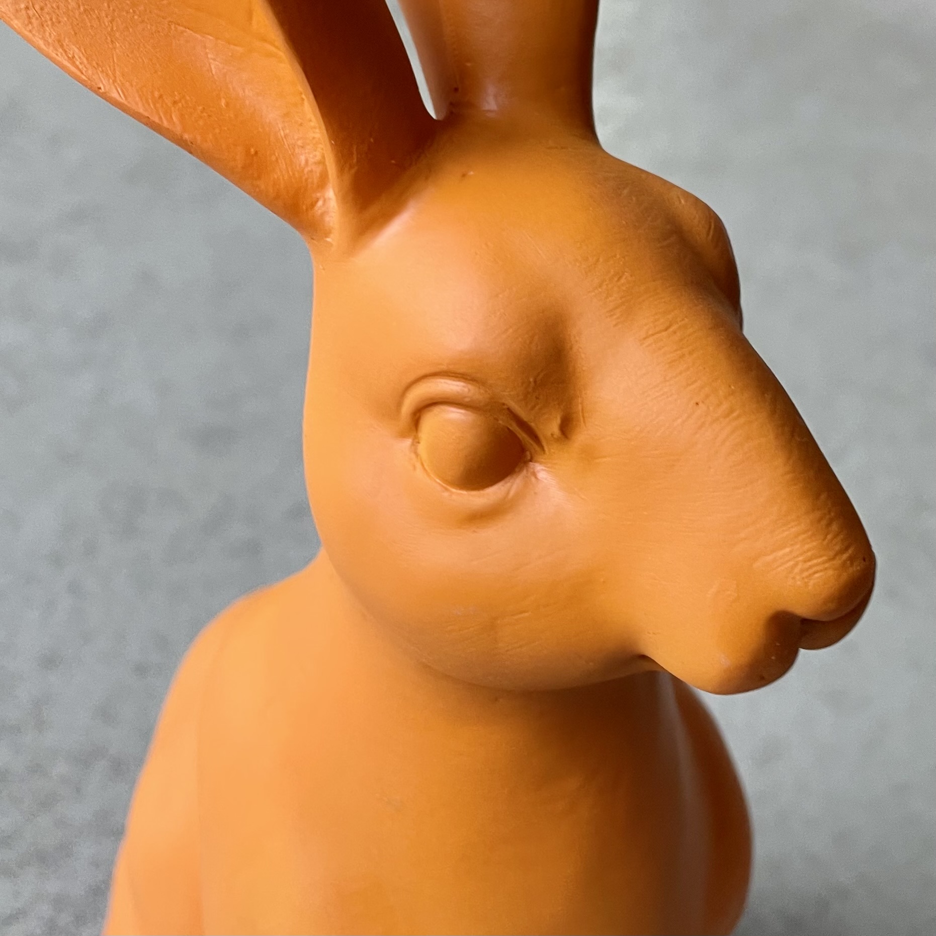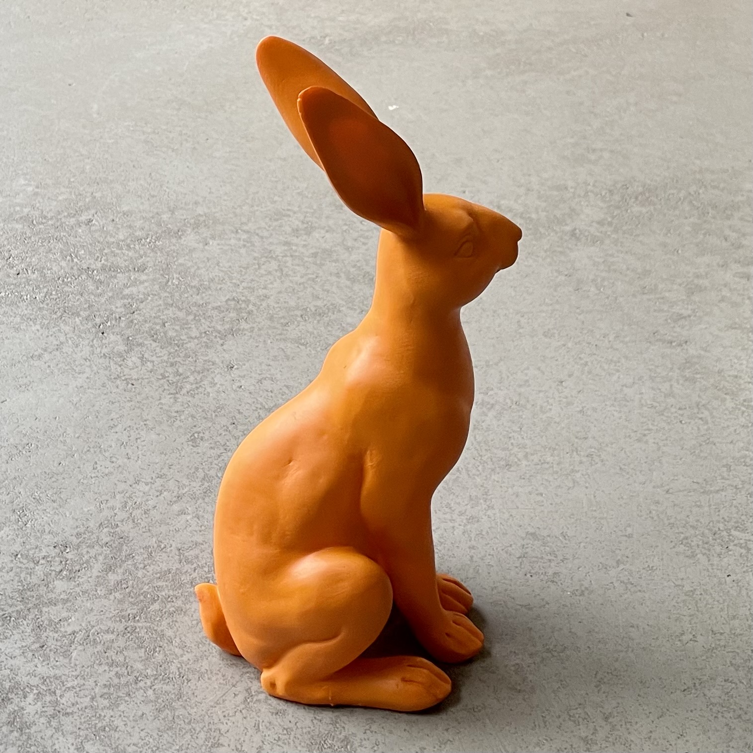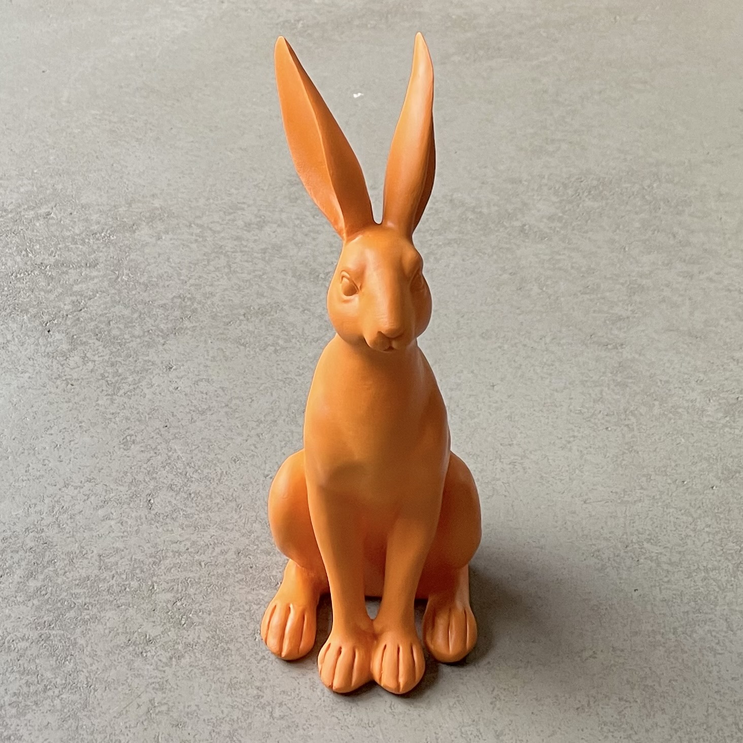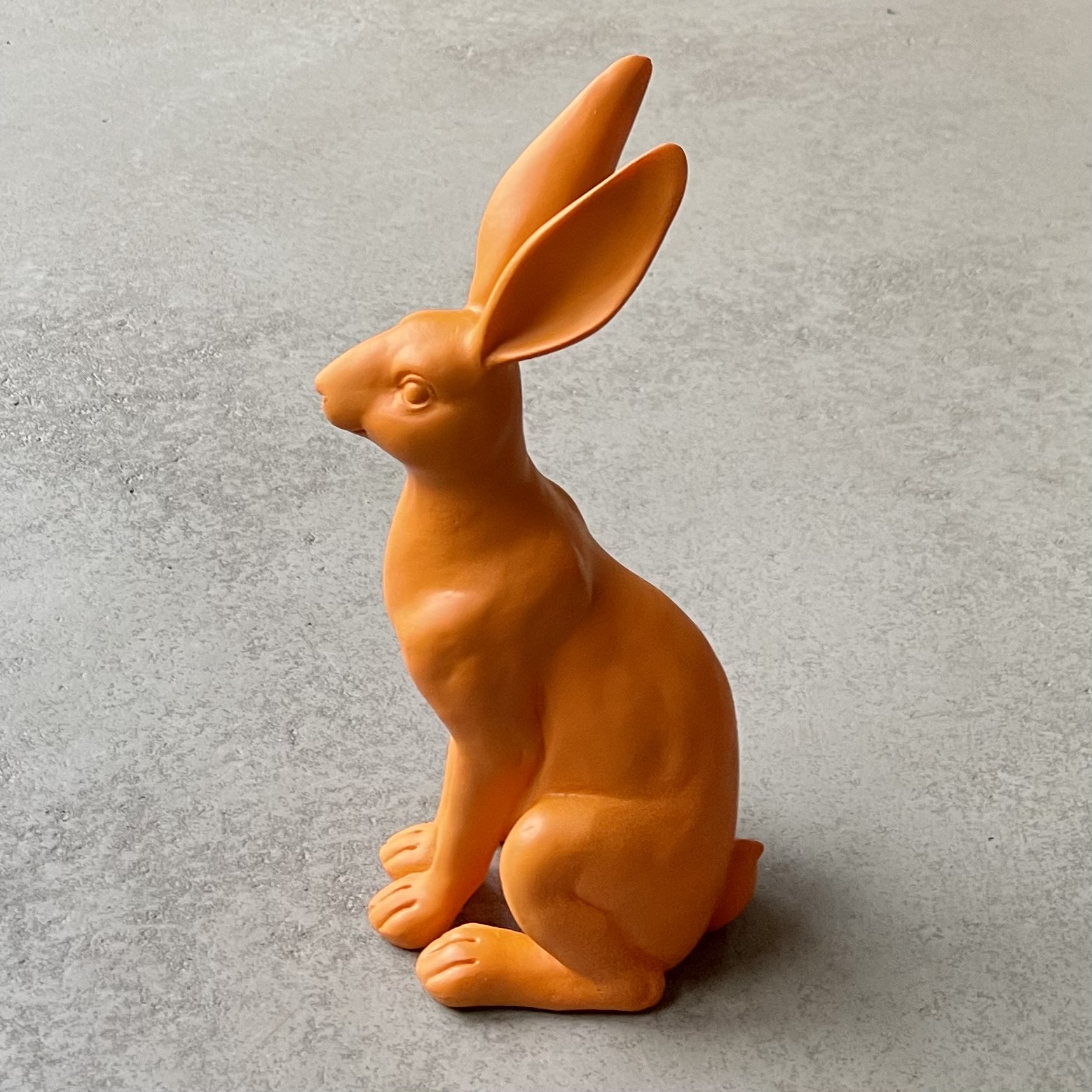 Sitzender Hase, ein schöner Farbklecks im Frühjahr.