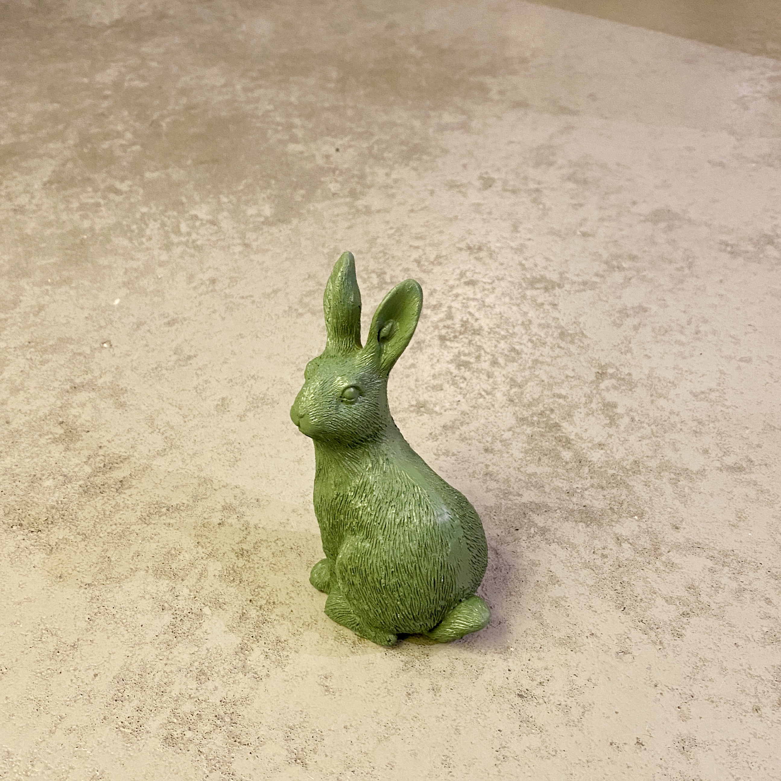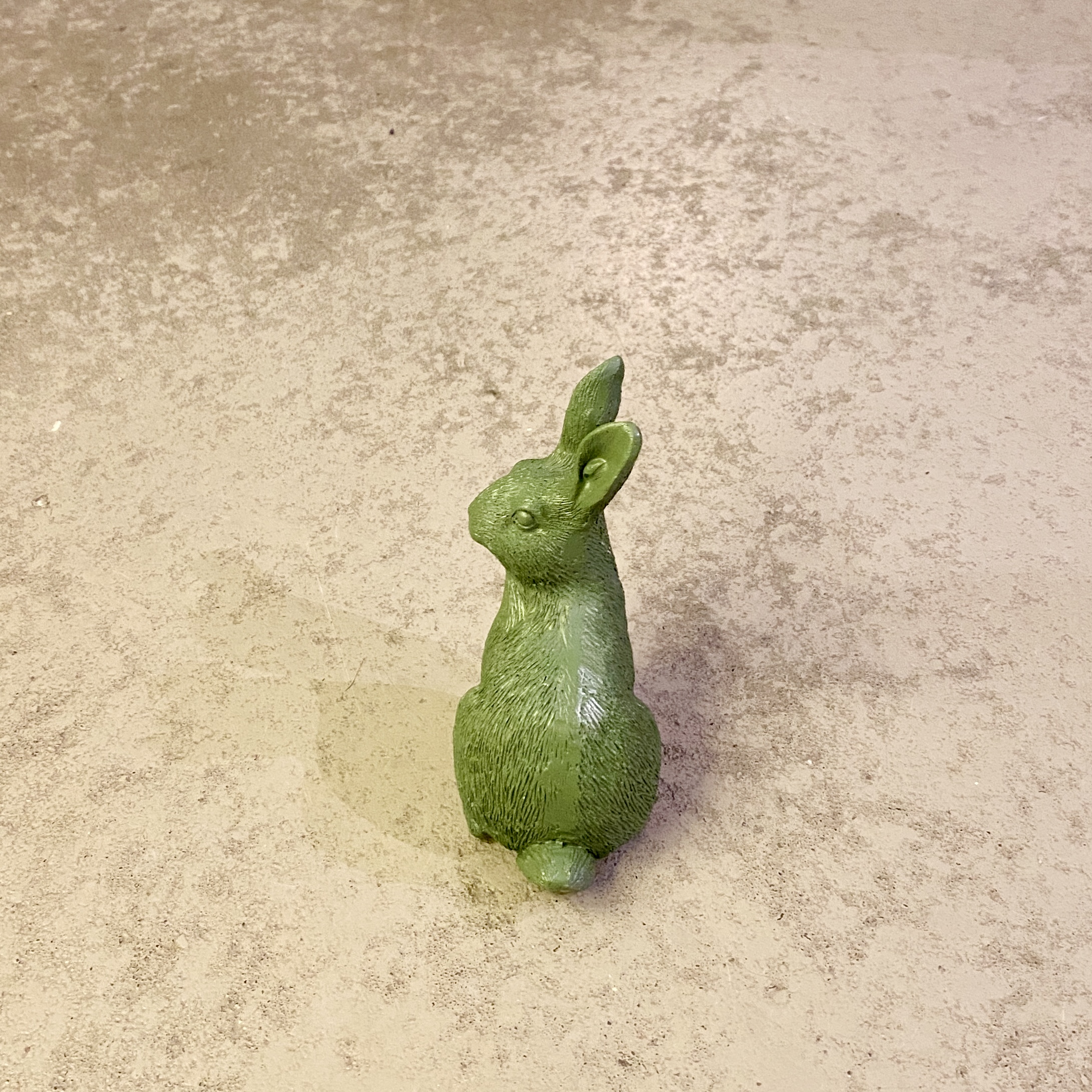 Kleiner sitzender Hase in Grün aus Polyresin für deine Osterdekoration.