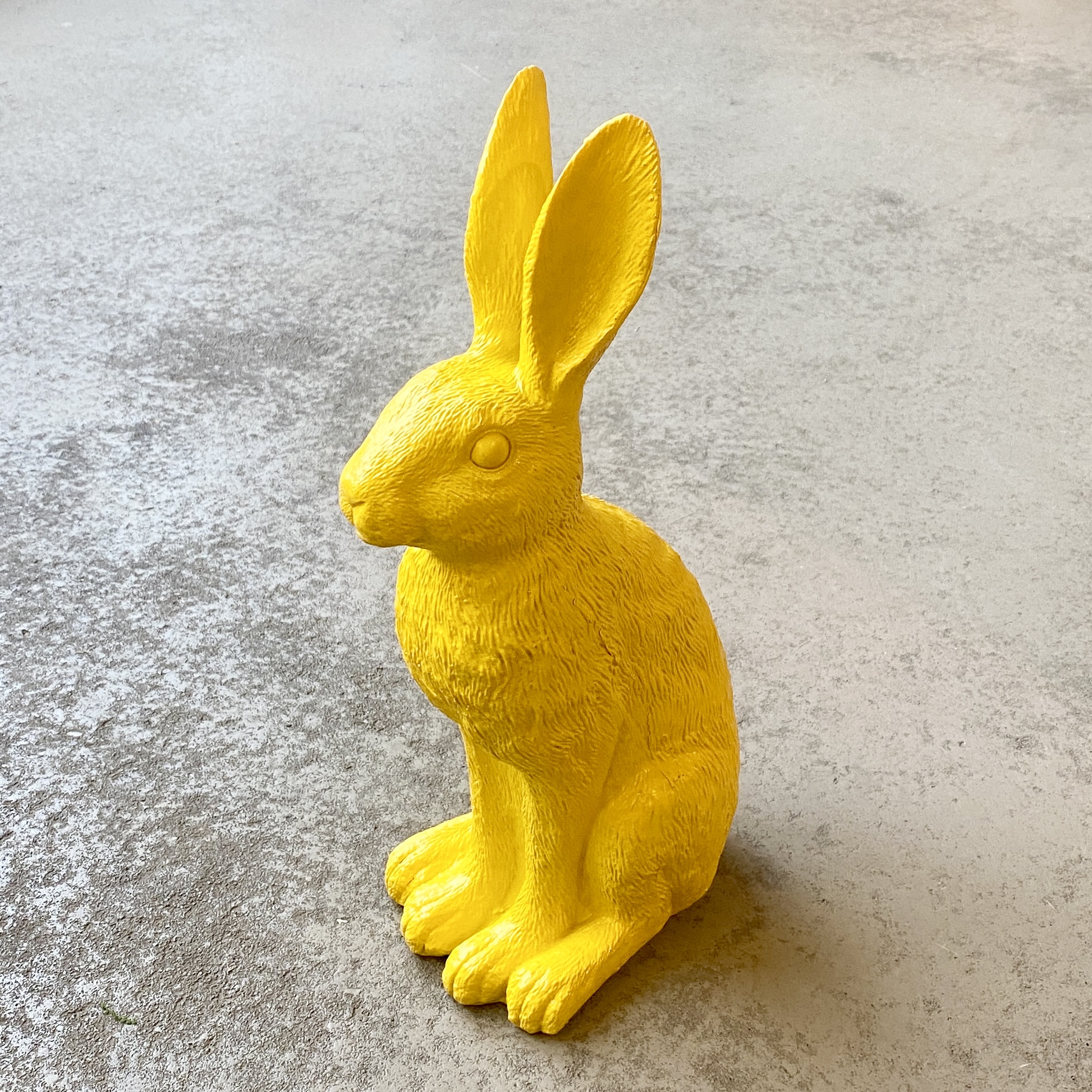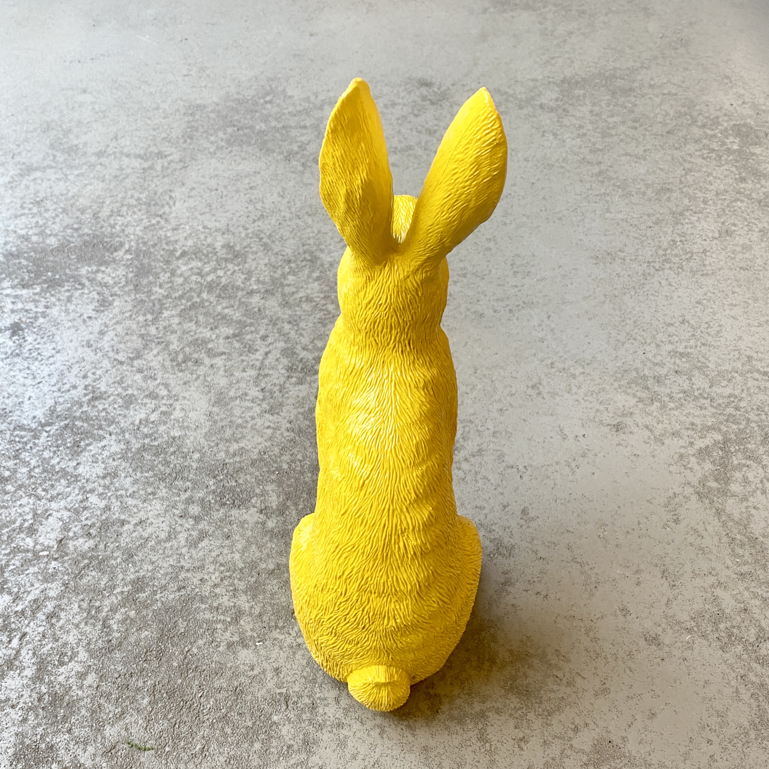 Großer sitzender Deko-Hase aus Polyresin in Gelb.