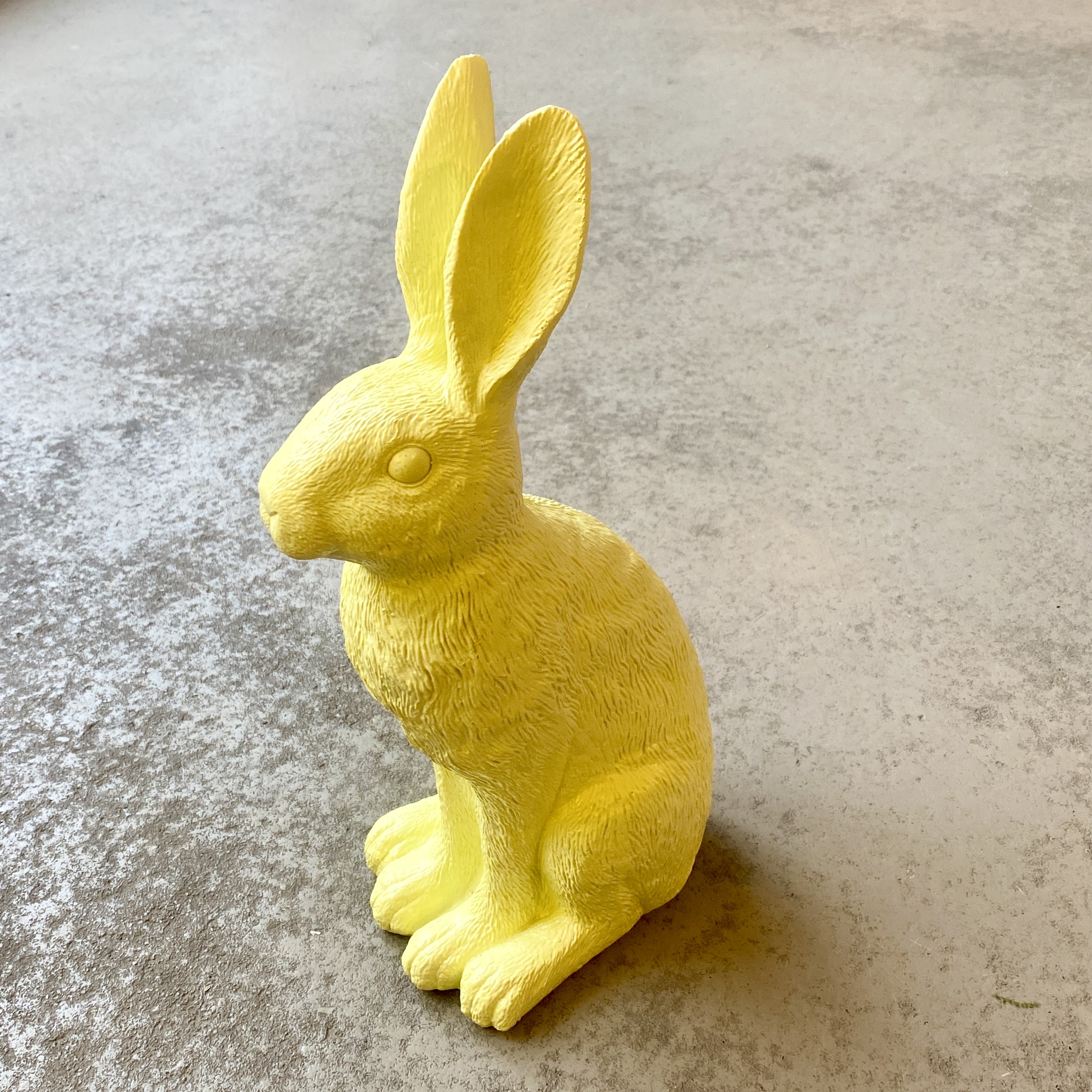 Großer sitzender Deko-Hase aus Polyresin in Hellgelb.