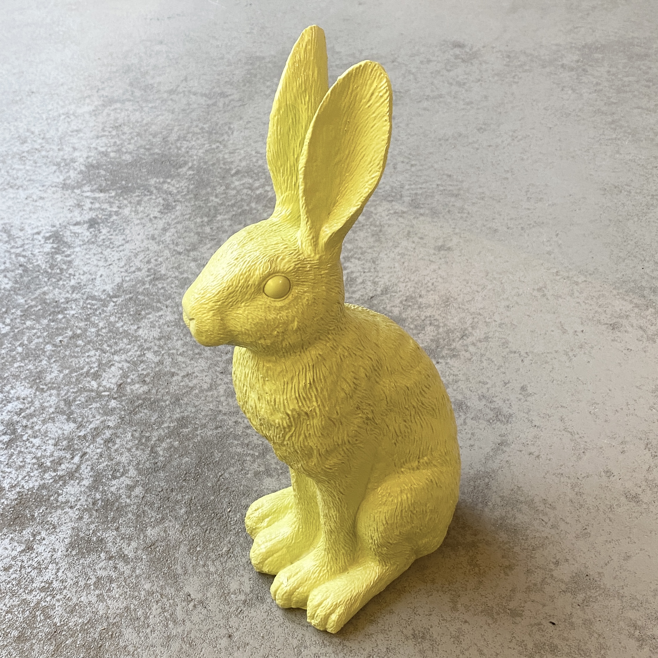 Großer sitzender Deko-Hase aus Polyresin in Hellgrün.