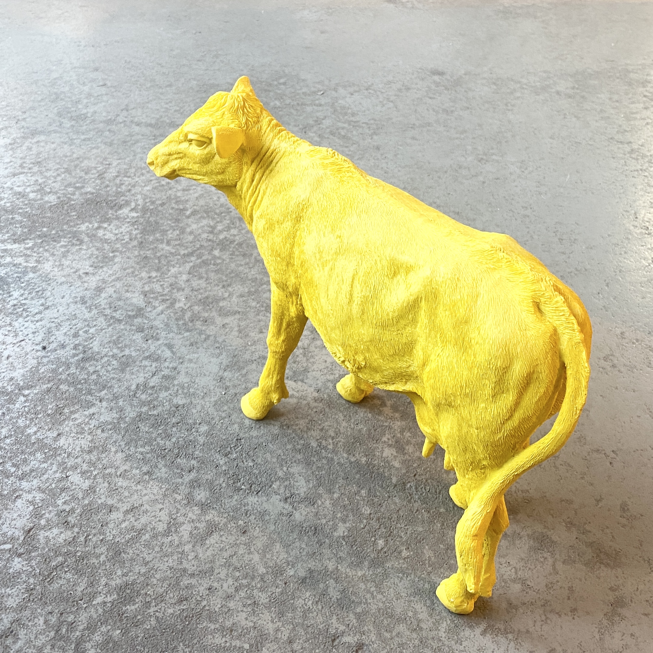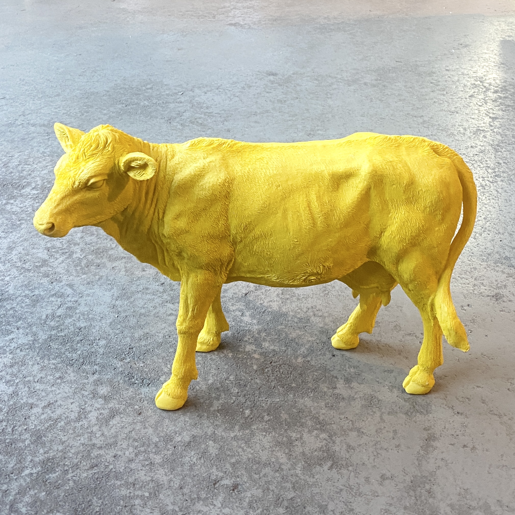 Stehende Kuh in Gelb aus Polyresin für deine Frühlingsdekoration.