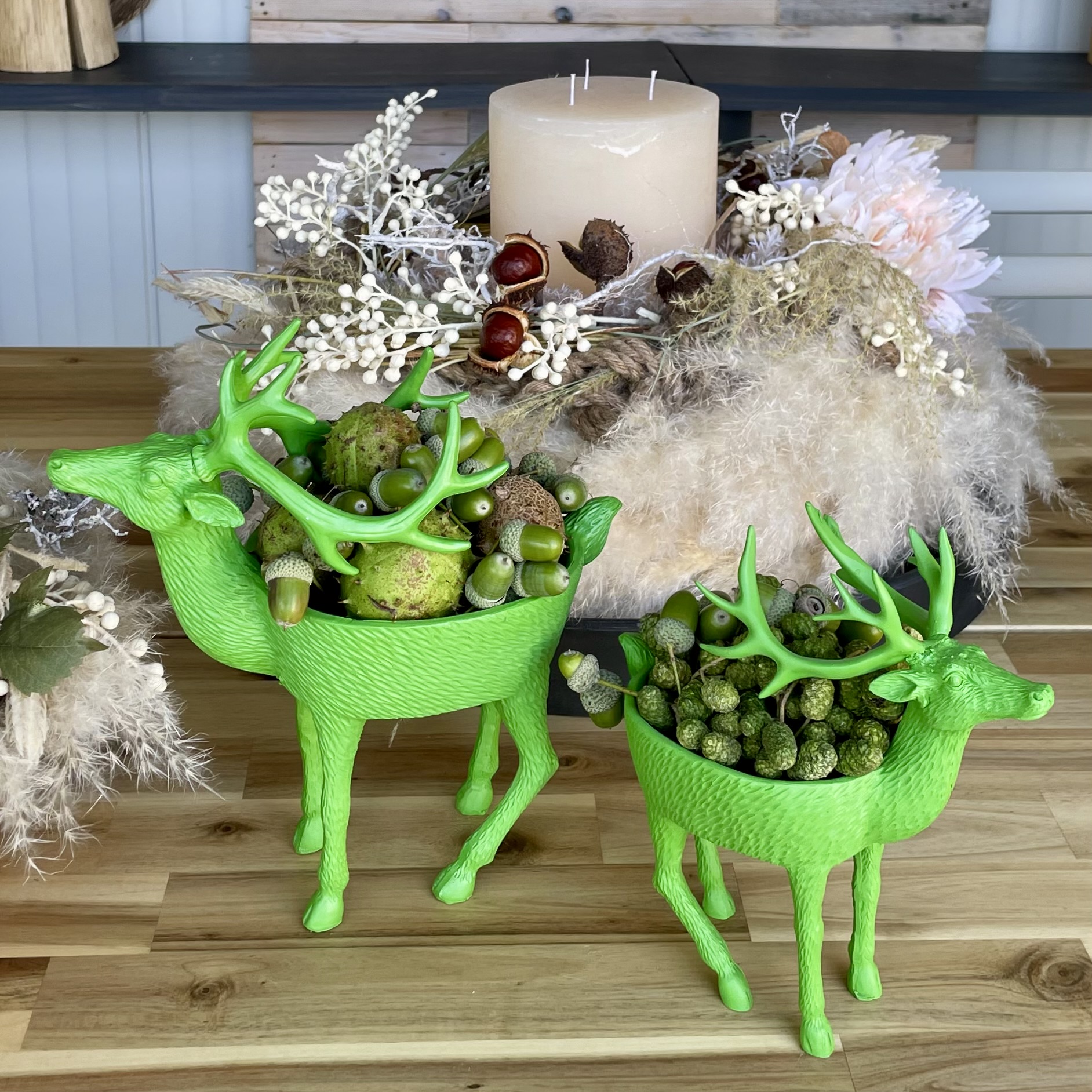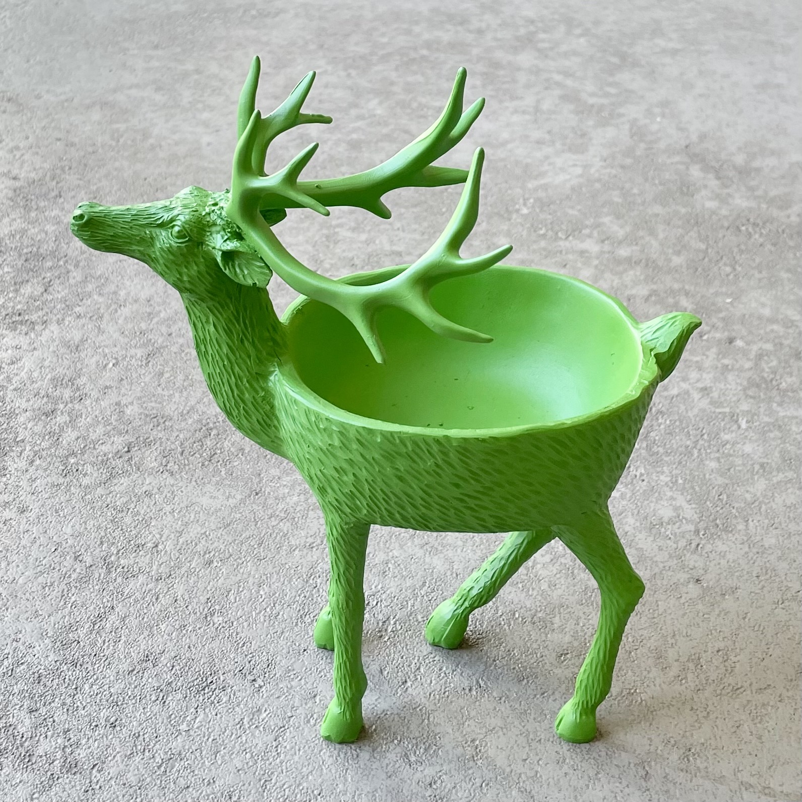 Rentier mit Schale für Kleinigkeiten wie Kastanien, Nüsse oder Süßes (eingepackt). Lieferung erfolgt ohne Deko.