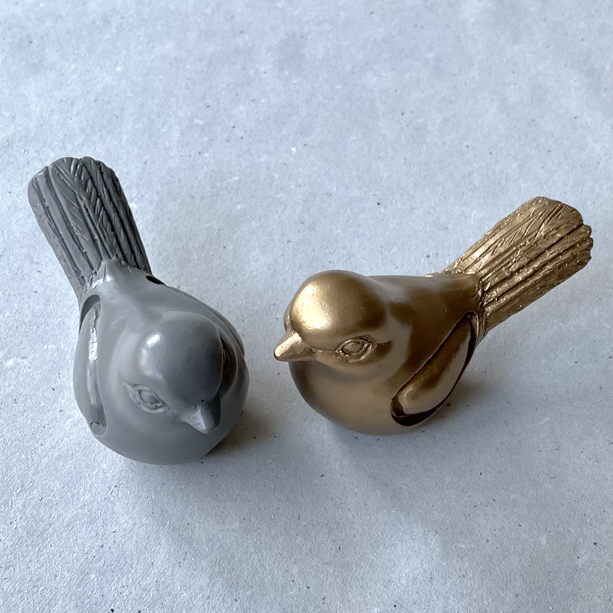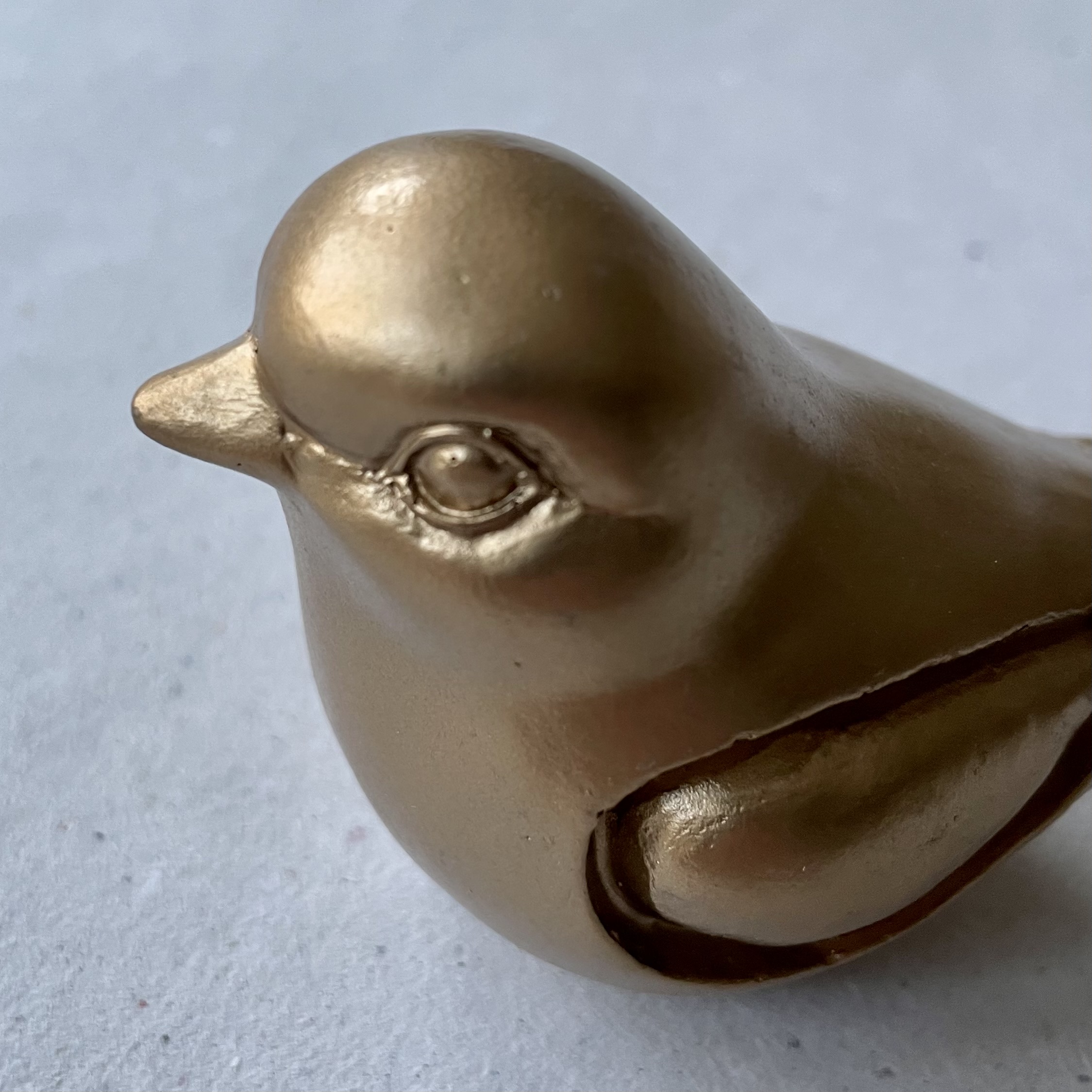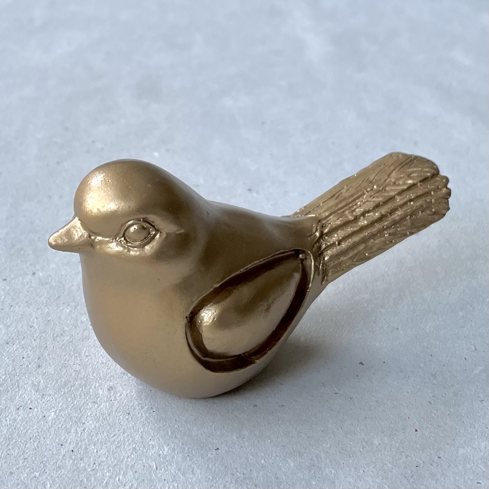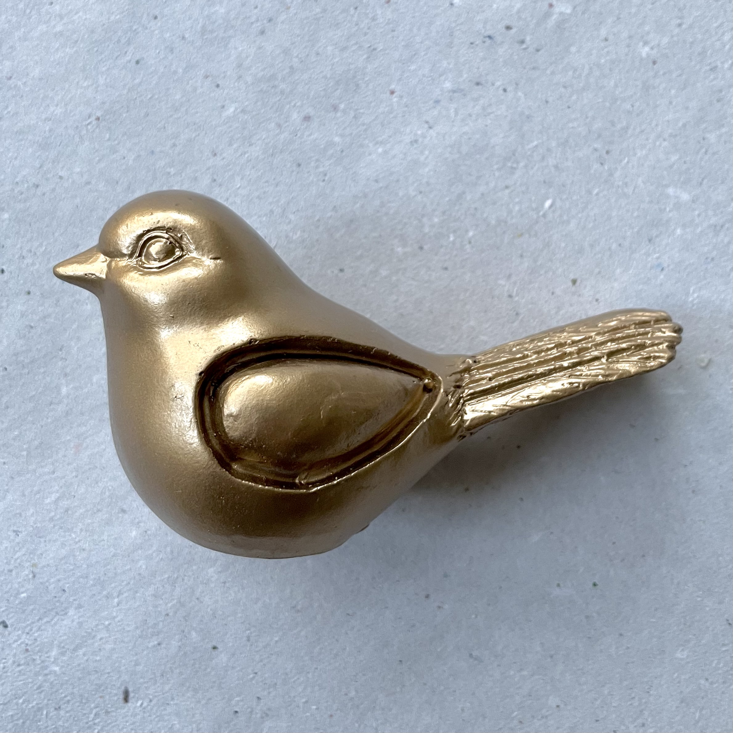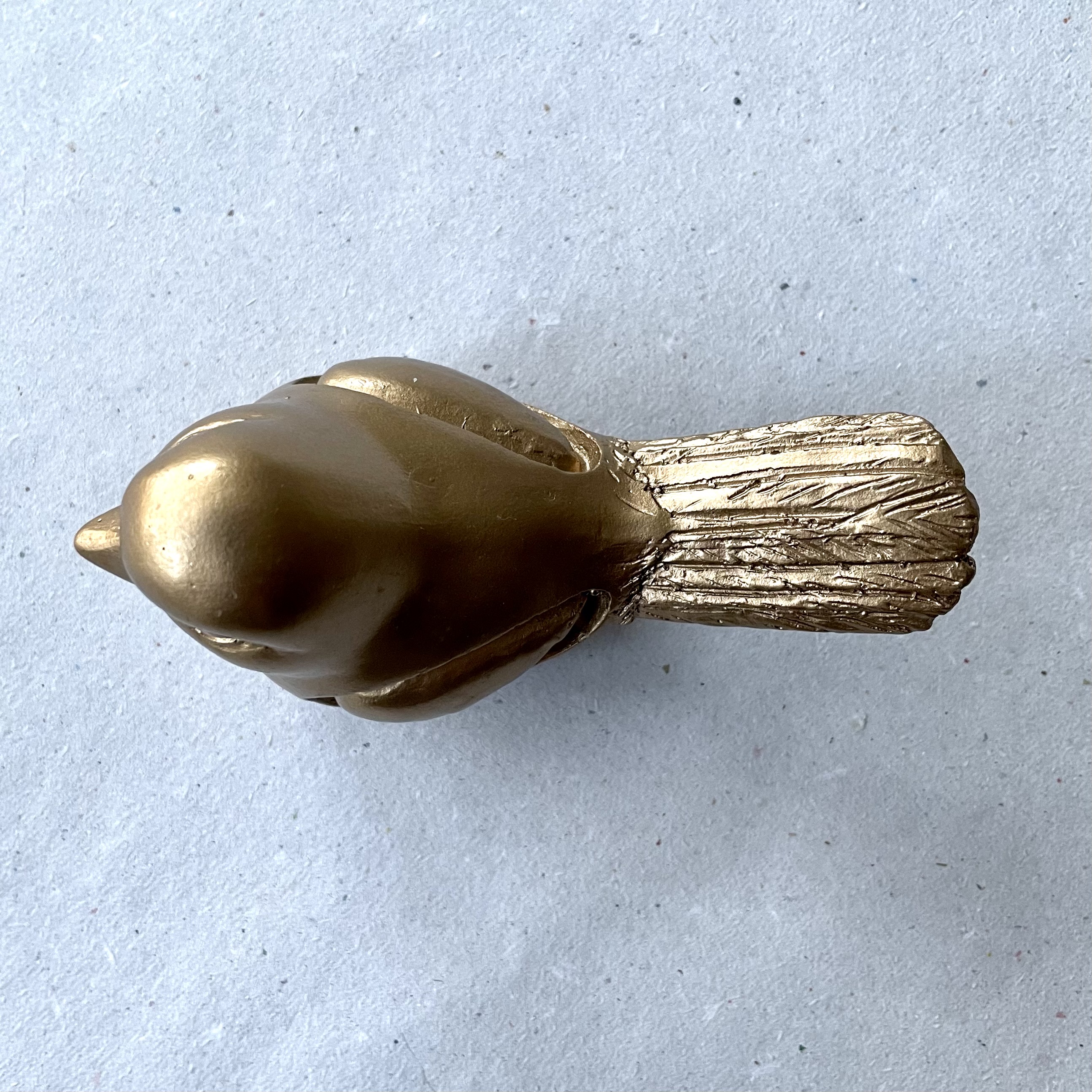 Vogel aus Polyresin in Gold zum Dekorieren im Innenbereich.