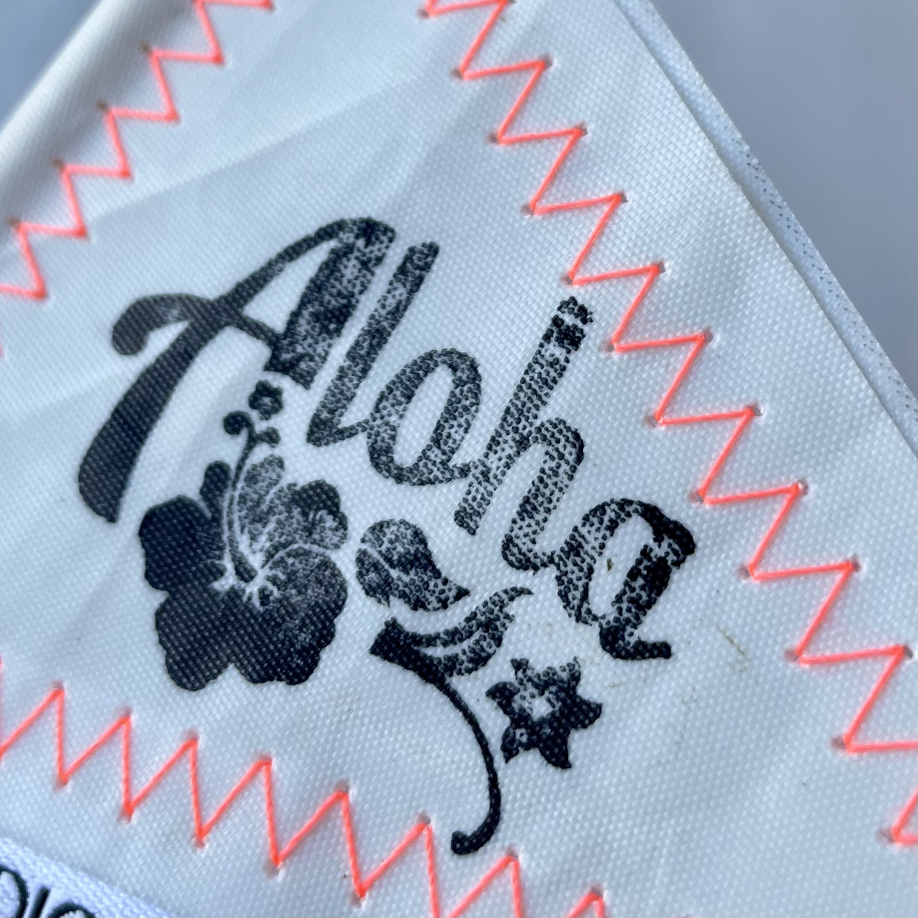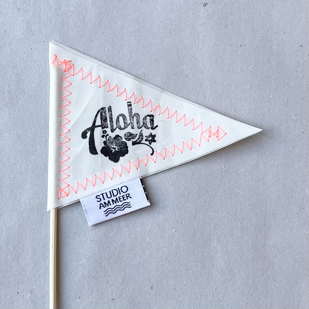 Segeltuch Deko-Fähnchen "Aloha" L29,5cm, weiß/neonorange/schwarz