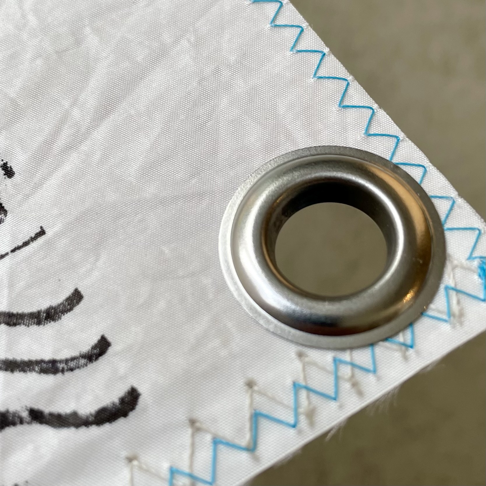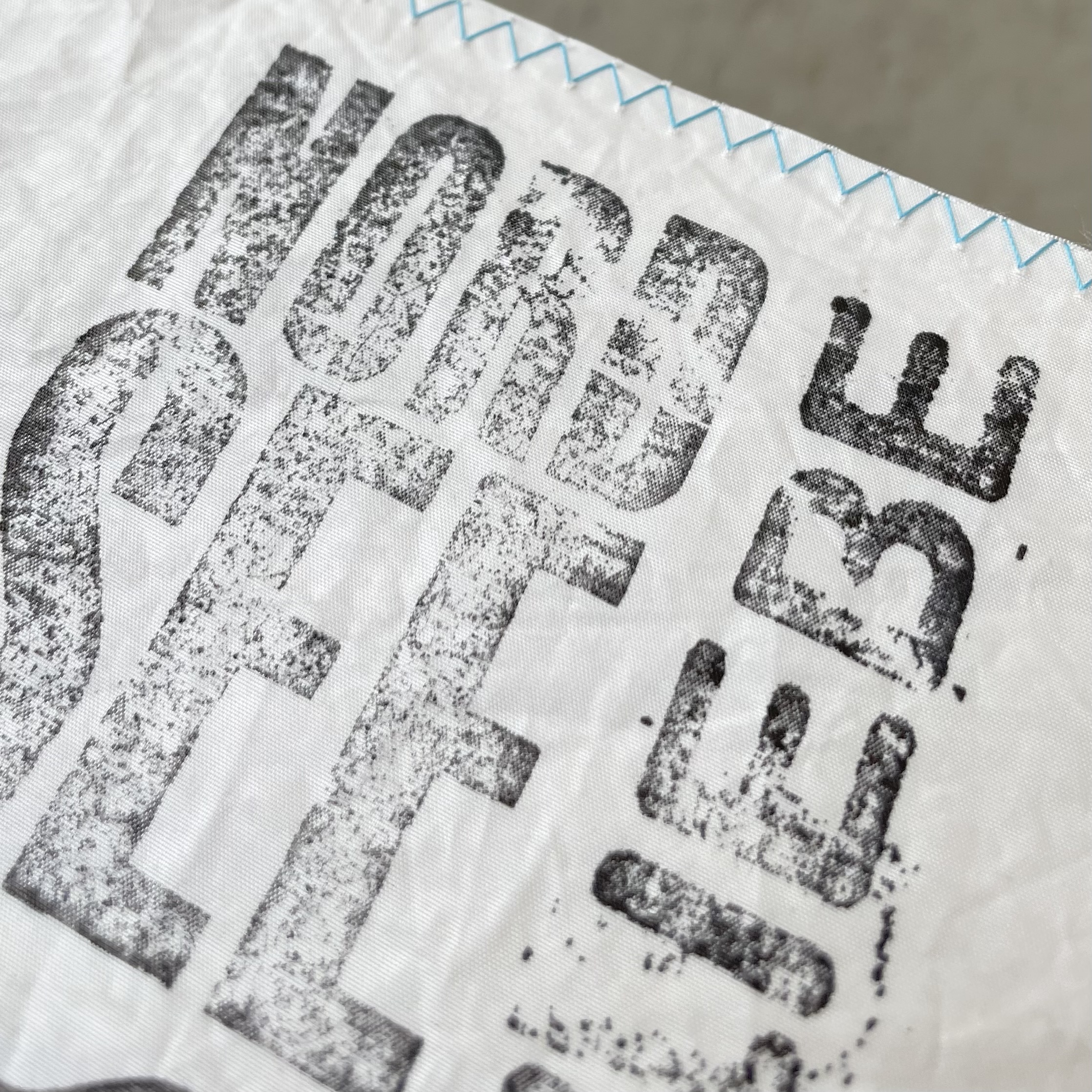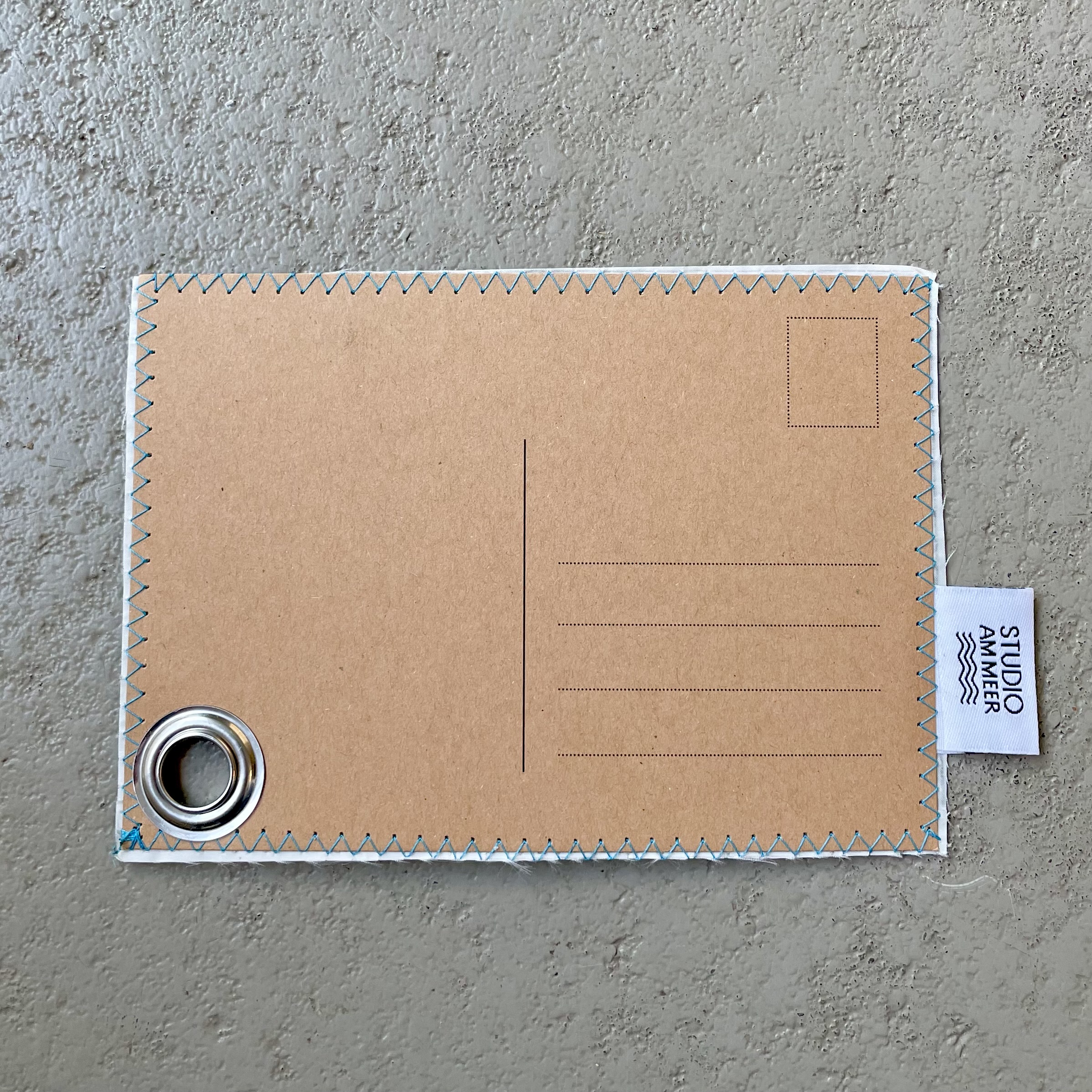 Postkarte aus recyceltem Segeltuch mit Aufhängung, jedes Stück ein Unikat. Rückseite aus Pappe zum Beschreiben. Schöner Geschenkanhänger oder als Dekoobjekt einsetzbar.