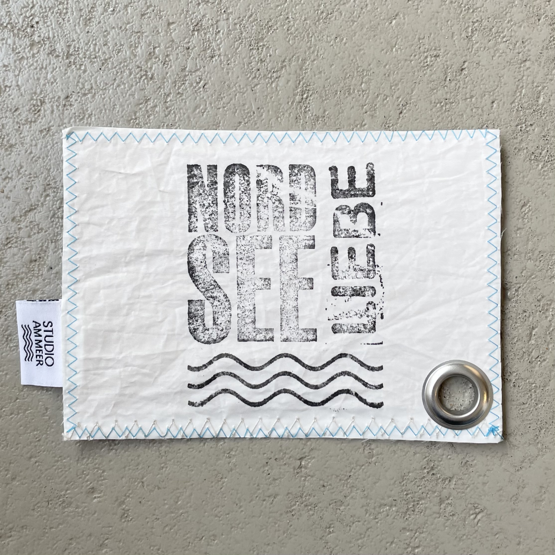 Segeltuch Postkarte "NORDSEE LIEBE" L15cm, weiß/blau/schwarz