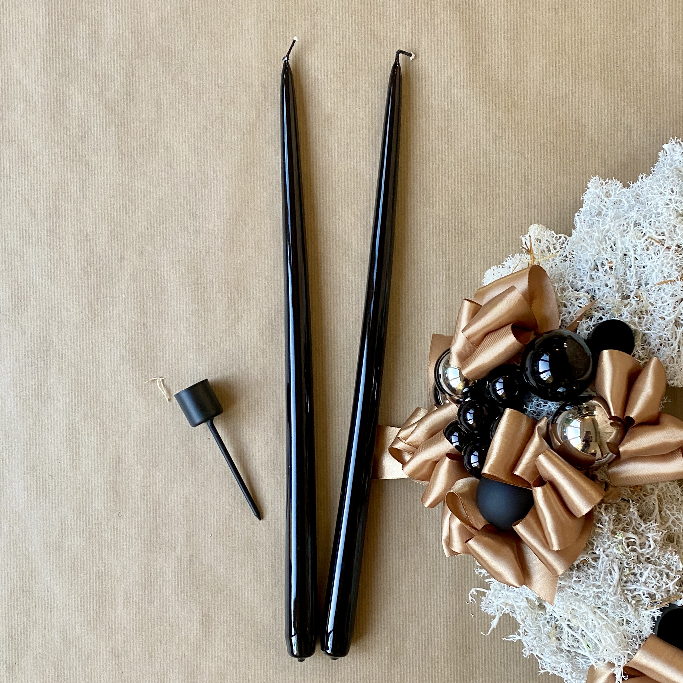 Eine lackierte Spitzkerze in der Farbe Schwarz, 40cm lang.