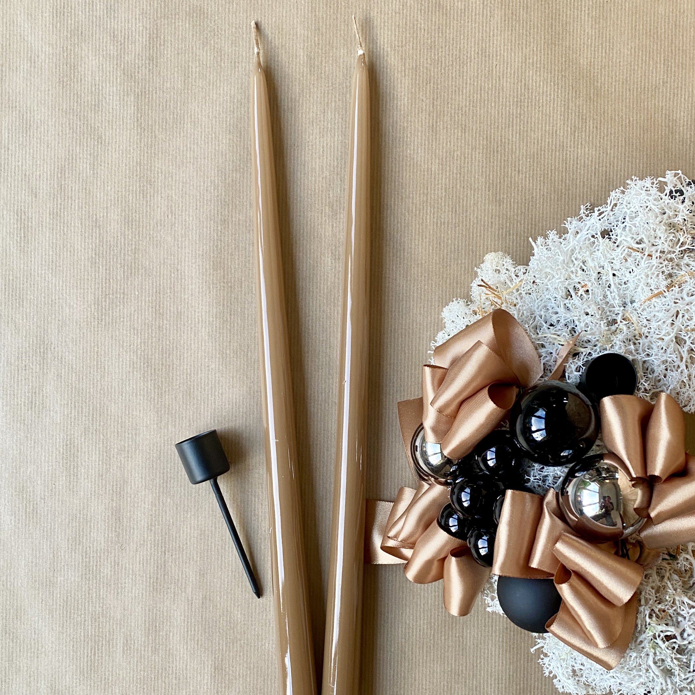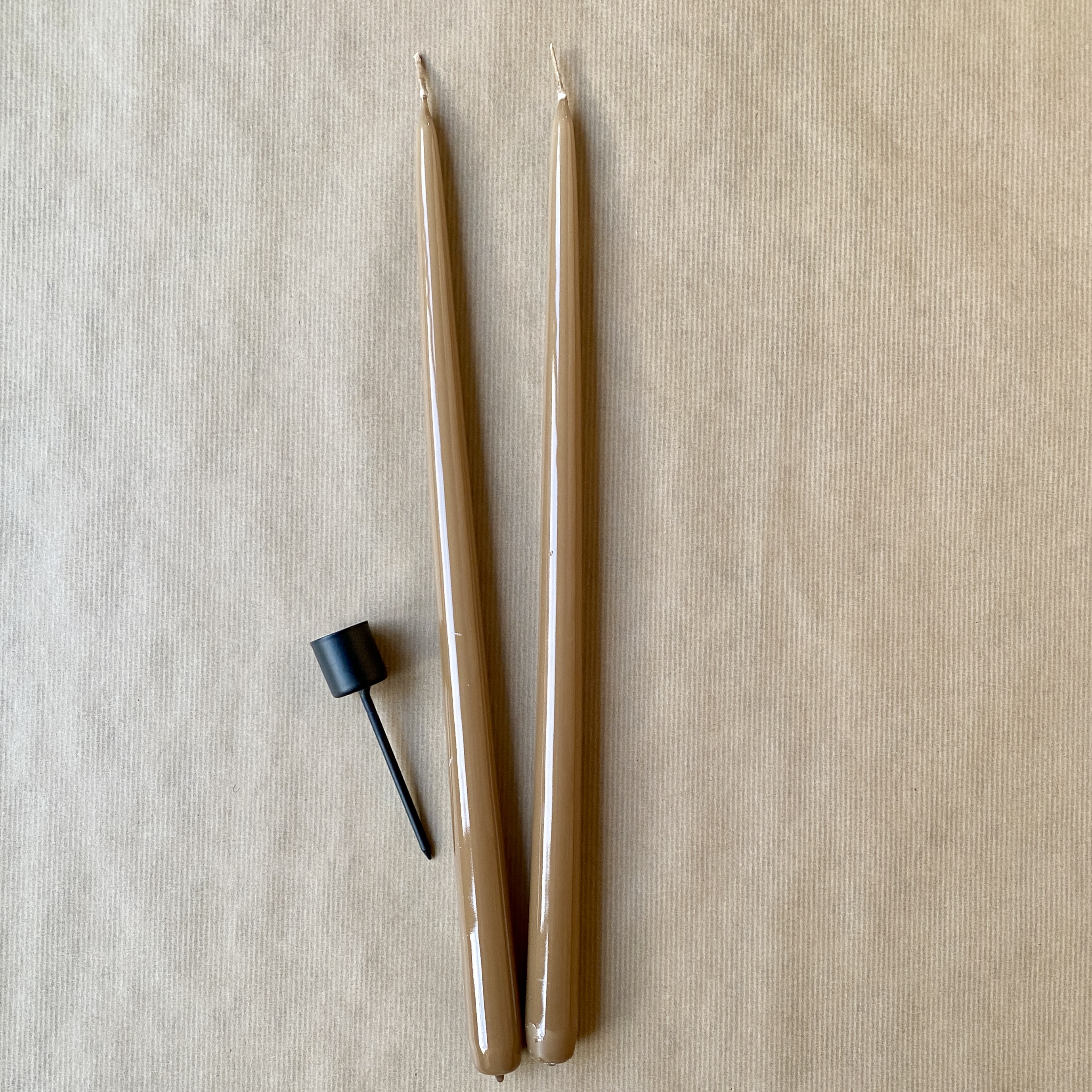 Eine lackierte Spitzkerze in der Farbe Zimt, 40cm lang.