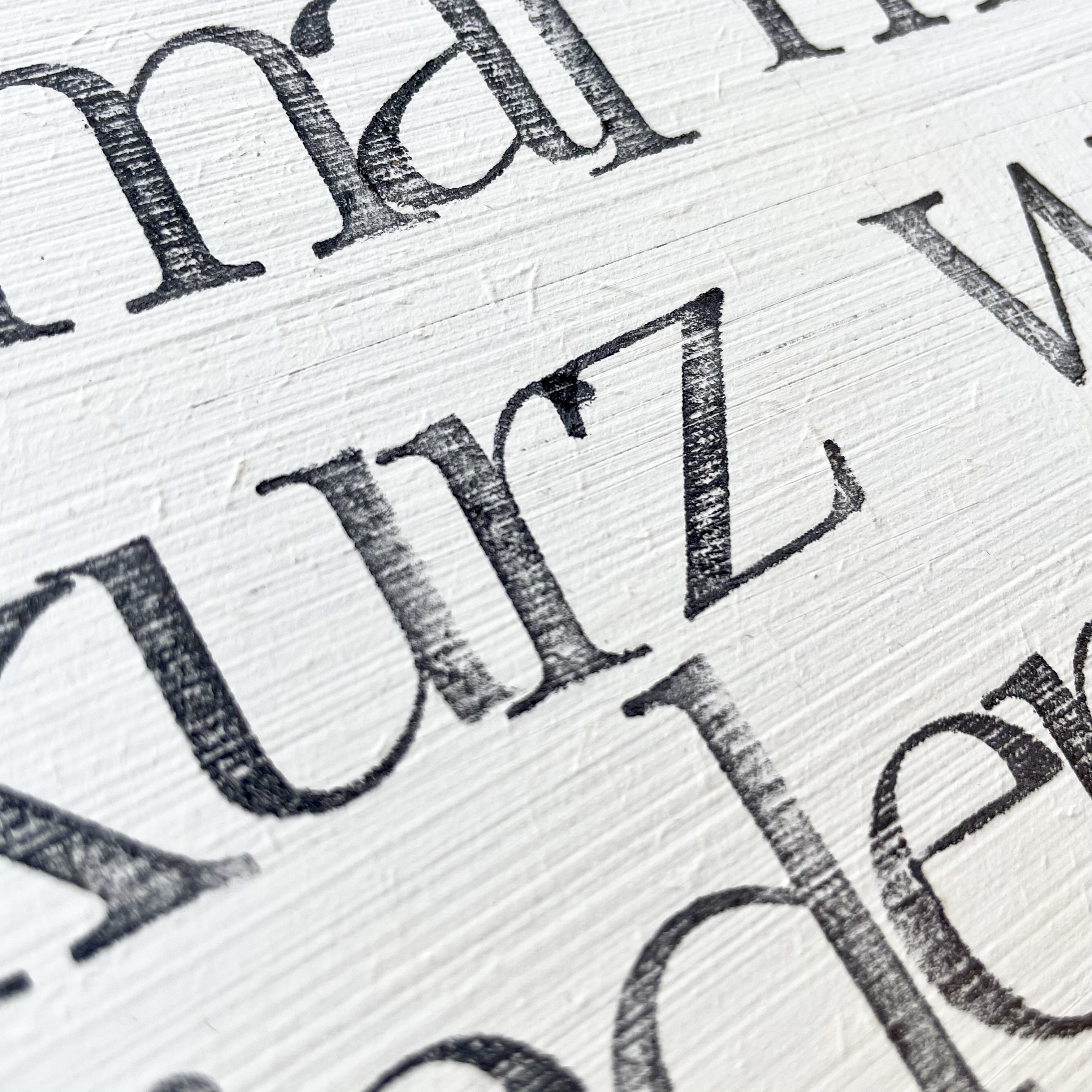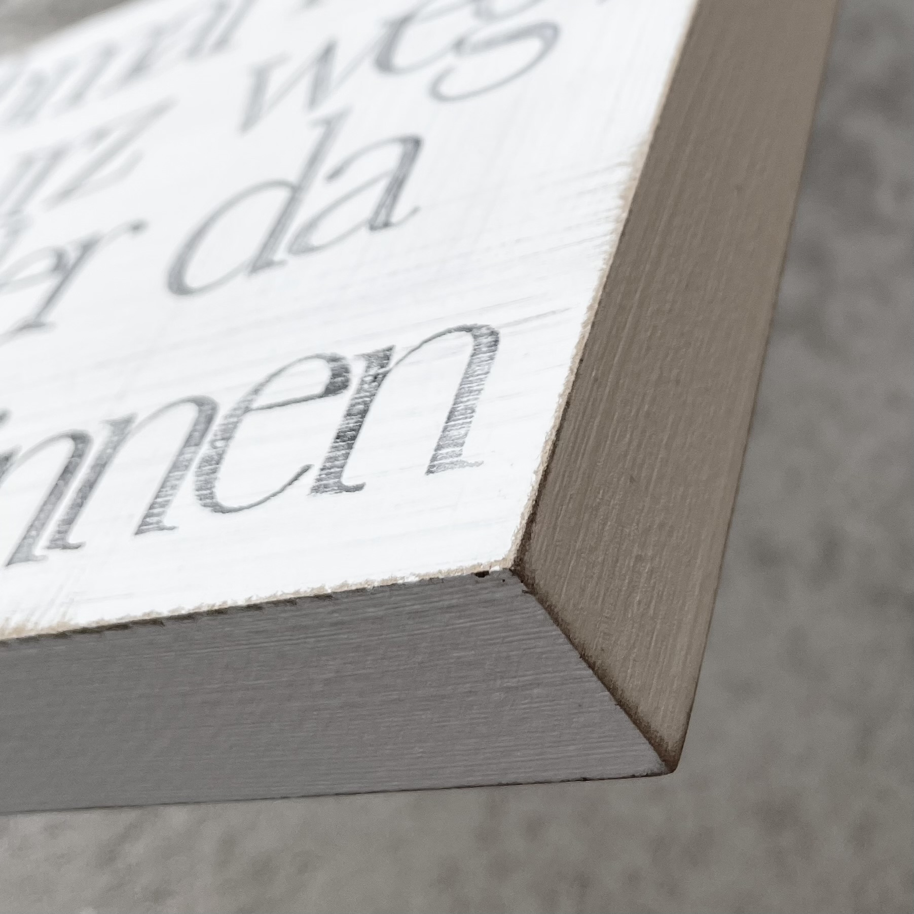 Holzplatte mit Text zum Stellen oder Hängen. Jedes Teil ein Unikat, wird in Handarbeit gestempelt.