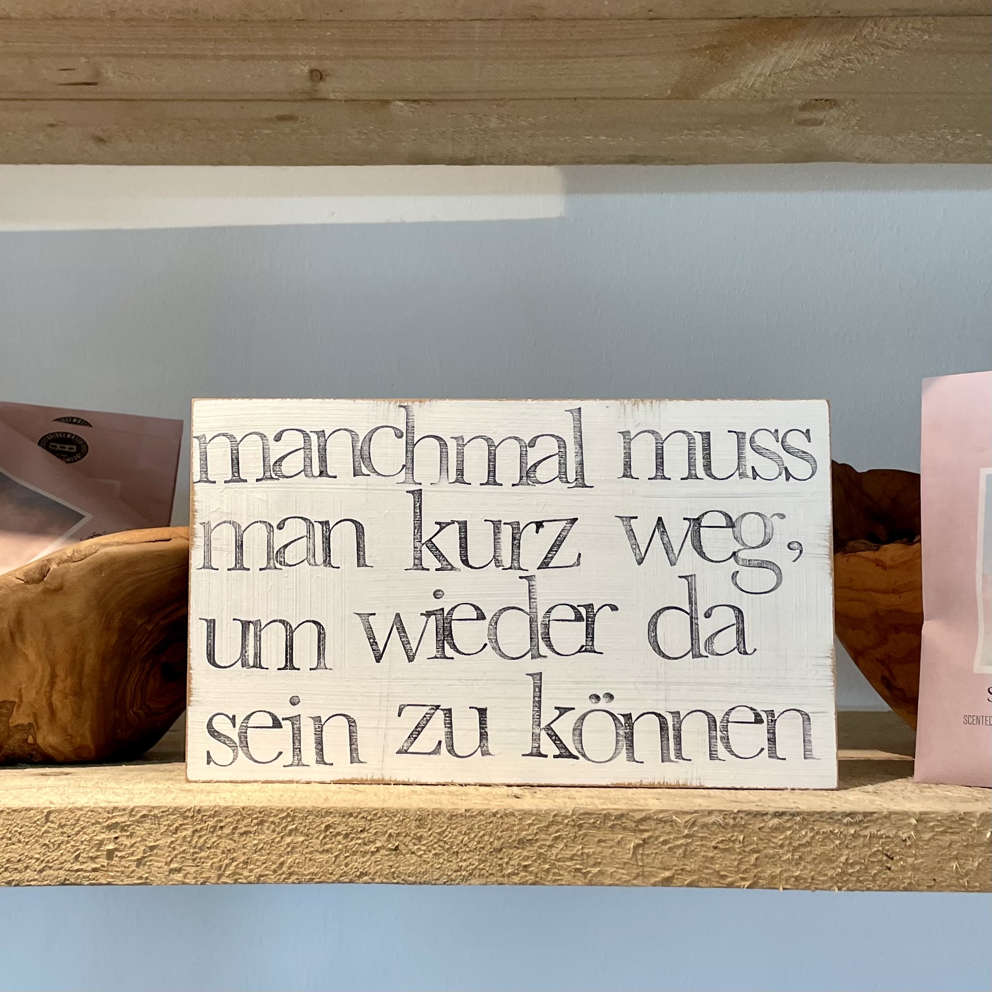 Textplatte "manchmal muss man kurz weg, um wieder da sein zu können" 25x15cm, weiß/schwarz