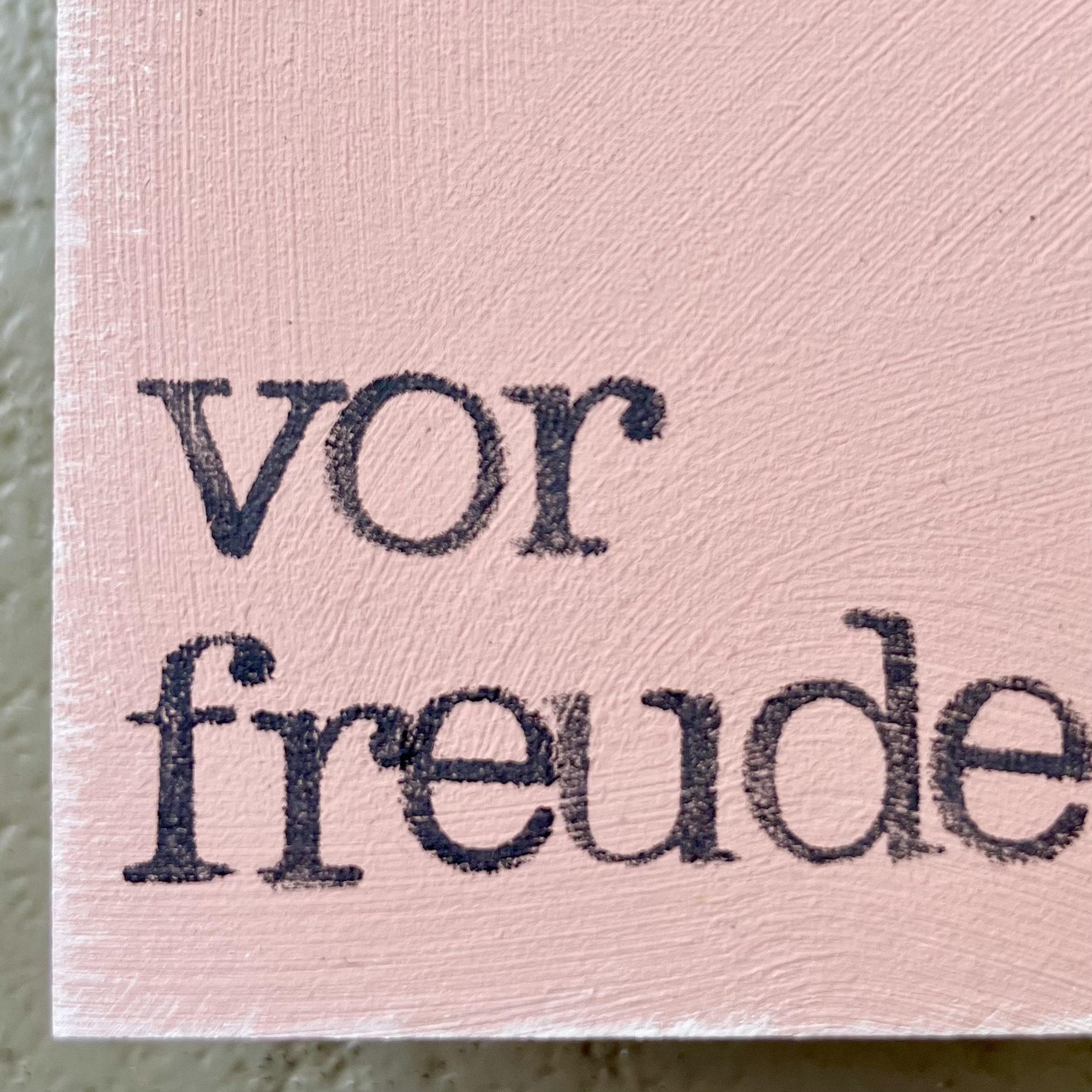 Textplatte "vorfreude" 6x6cm, puder/schwarz